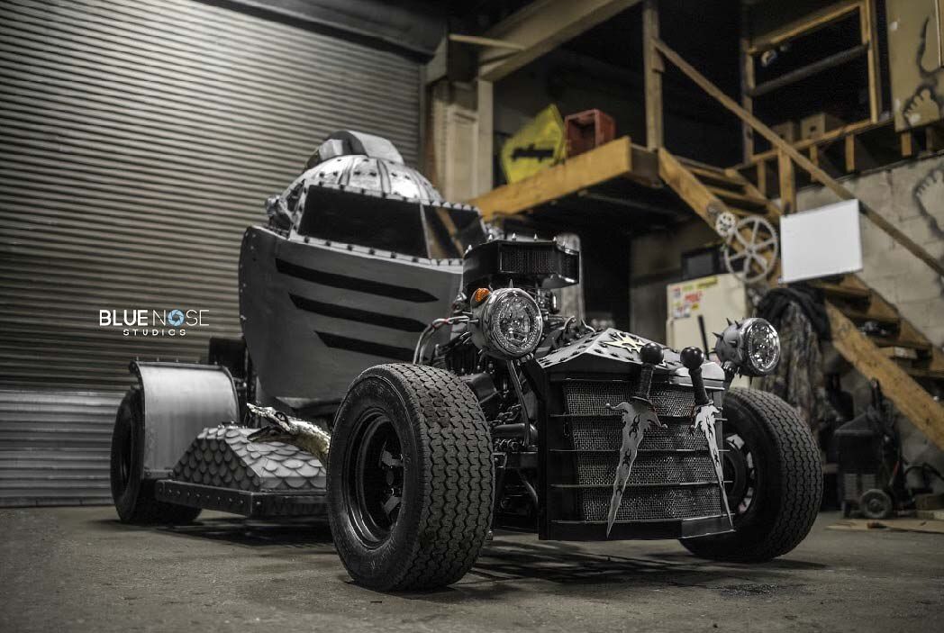 В задней части есть настоящая пушка, которая изначально должна была выполнять роль выхлопной трубы, но мастера из Bohata Design превратили его в багажник. Правда «багажник» — это громко сказано. Туда вряд ли влезет что-то больше сотового телефона или бутылки питьевого йогурта. Решетка украшена парой мечей с кожаными рукоятками, а в непосредственной близости от водителя находится очень реалистичный боевой топор.