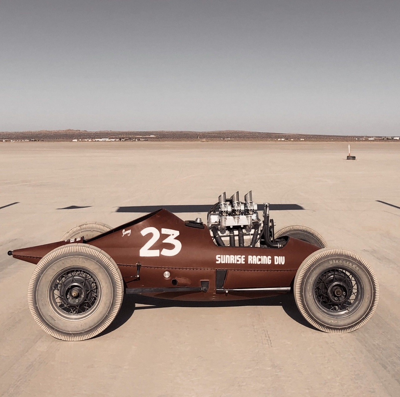 Сегодня я хочу показать вам один очень необычный хотород. Несмотря на то, что он выглядит олдскульно, его сделали совсем недавно. Вдохновением стал оригинальный автомобиль, созданный сразу после окончания Второй Мировой войны пионером соляных гонок Биллом Берком. Тогда Билл использовал топливный бак от военного истребителя P51 Mustang в качестве основы для корпуса. Создатели реплики решили повторить его работу.