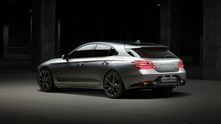 По кузову новому G70 пришлось переделать лишь корму. Универсал обзавелся собственными задними крыльями, крышей и дверцей багажника. Благодаря большому наклону задних стоек и огромному панорамному стеклу, заходящему на боковины, корма выглядит довольно изящной и действительно спортивной.