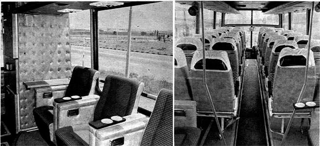 В салоне кроме 40 кресел находился гардероб, рукомойник, буфет и холодильник. Сиденья имели несколько регулировок и были оснащены ремнями безопасности (не забывайте, это 1975 год!).