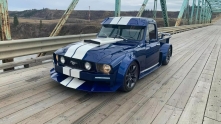 В отличие от большинства самодельных проектов, в которых для обвесов и панелей на заказ используется стекловолокно, все кузовные элементы в данном проекте изготовлены из металла. В качестве последнего штриха уникальный пикап окрасили в классический синий оттенок с белыми полосами.