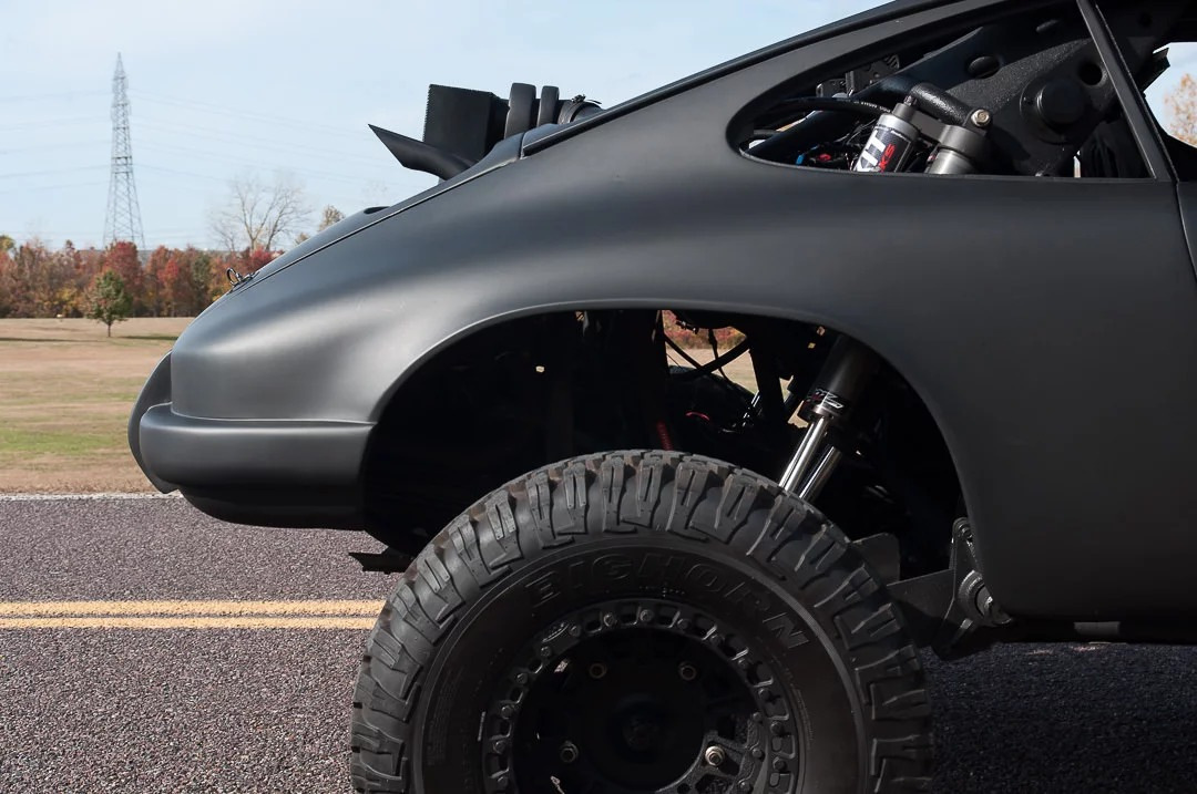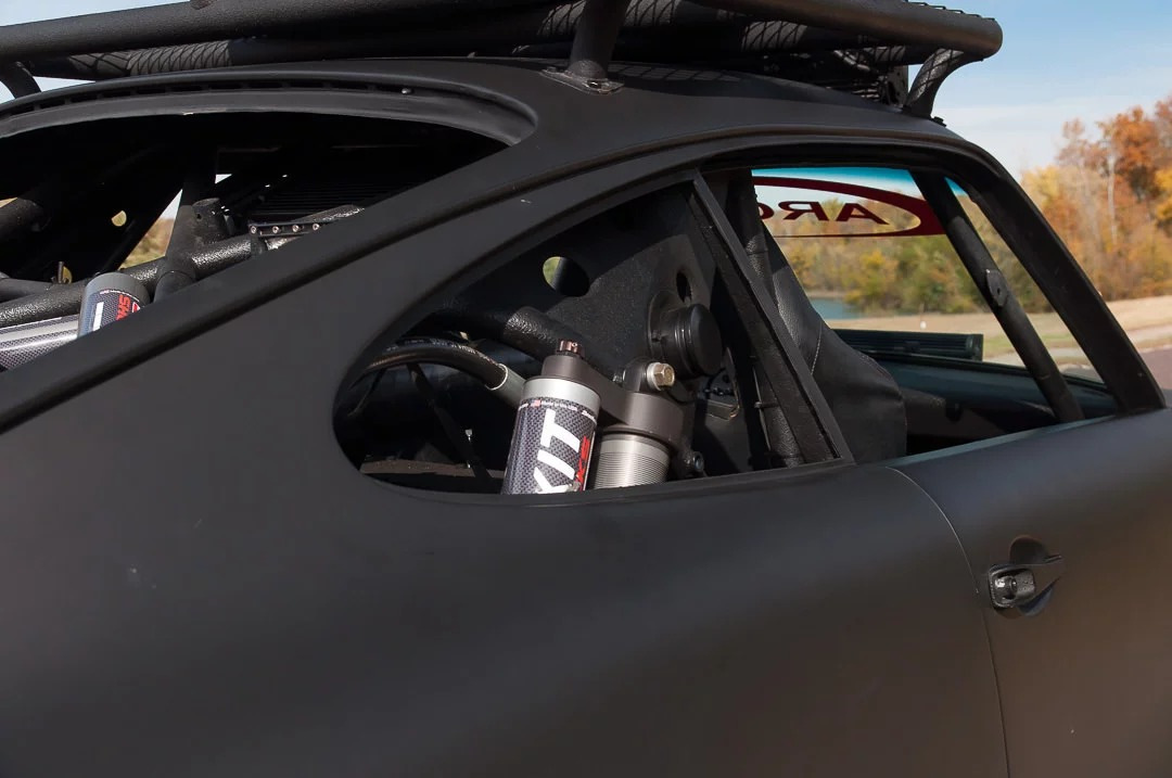 Внутри внедорожного Porsche 911 вы найдете пару гоночных ковшеобразных сидений, приборы Autometer и трехспицевое рулевое колесо со скошенной нижней частью. Водителя и пассажира будет развлекать аудиосистема ARC.
