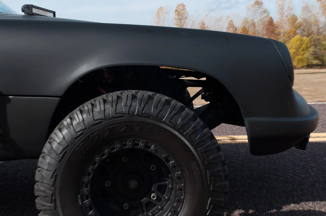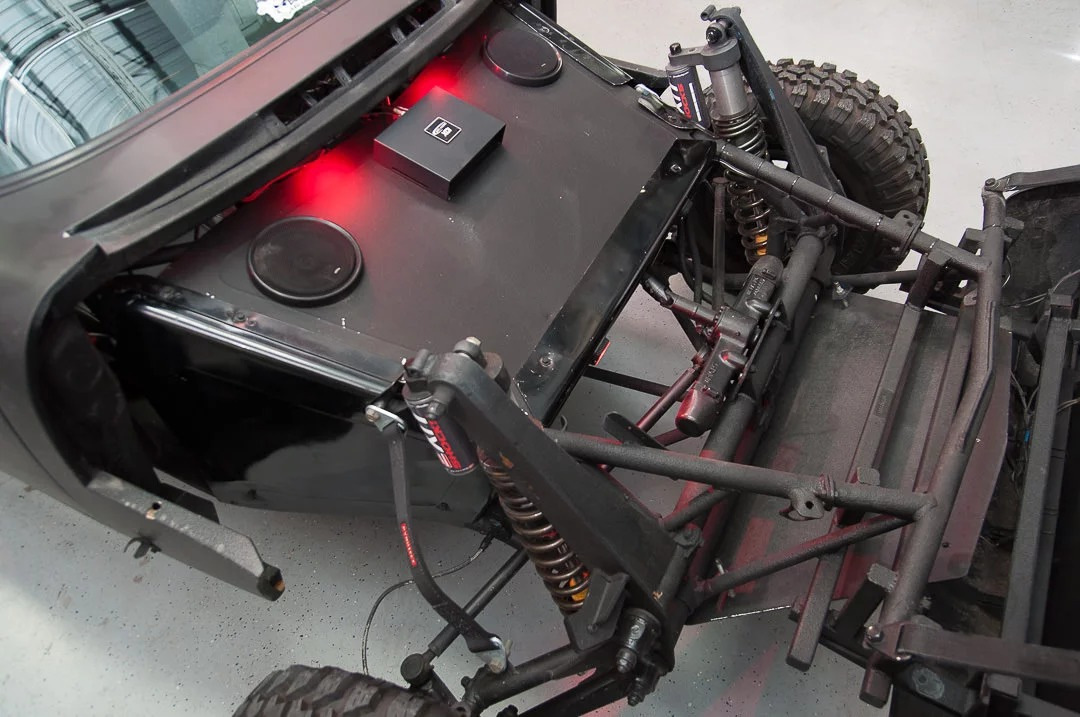 В конструкцию также добавили внутренний каркас безопасности, независимый переднюю и заднюю подвески с одиночными амортизаторами Exit на каждом переднем колесе и двойными амортизаторами Exit сзади. Колеса полностью вынесли из колесных арок, чтобы обеспечить полную свободу их движений. 15-дюймовые колесные диски OMF состоят из трех частей и обуты во внедорожные шины Maxxis Bighorn.