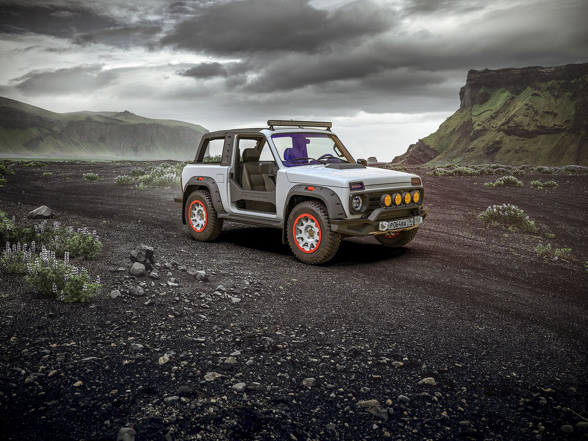 Автомобиль планировалось «обуть» в крупные грязевые шины, для чего пришлось бы несколько расширить колесные арки. А в качестве узнаваемых элементов должны были выступать дополнительные противотуманки и светодиодная «люстра» на крыше.