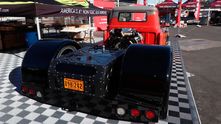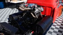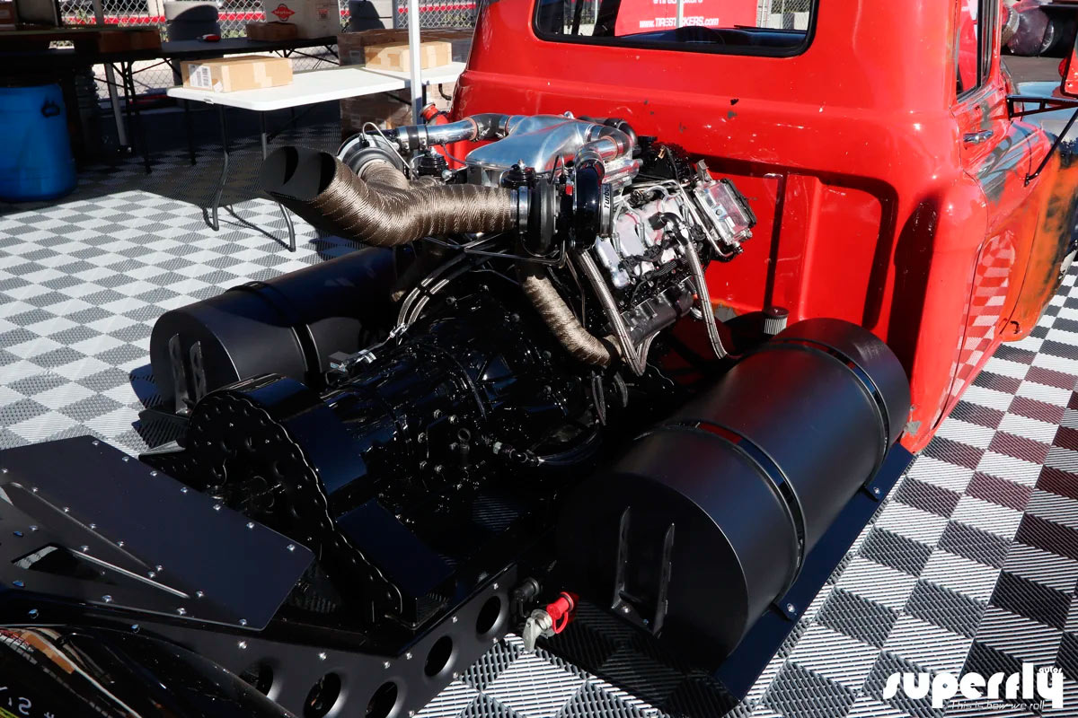Вы удивитесь, но под капотом у него ничего нет. Огромный дизельный двигатель Duramax разместили "в базе", сразу за кабиной. Он дополнительно оснащен двумя турбинами, встроенным интеркулером и кастомными клапанными крышками.