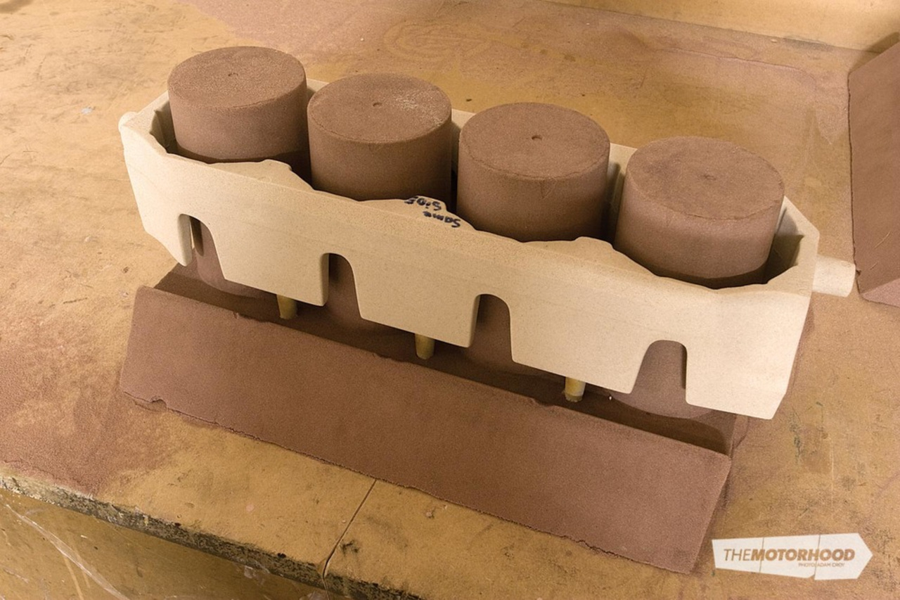 Расплавленный алюминий при температуре более 700° вливается в песочную форму очень очень аккуратно, чтобы избавиться от воздушных пузырей и неровностей, которые ослабят конструкцию.