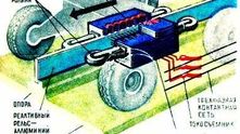 Каждый вагончик был оснащен довольно любопытным электродвигателем, в котором статор был жестко связан с рельсом с помощью нажимных роликов и упруго - с корпусом вагончика. Сам статор сделали гибким для прохождения поворотов трассы.