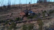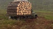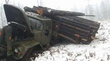 Бывает и такое: двигатель сломался при попытке вызволить грузовик из грязевой ловушки. Обратите внимание, что бревна довольно сильно выступают за пределы кузова.