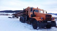 Иногда можно встретить и вполне обычные лесовозы-роспуски. Например, этот КрАЗ, который загружен длиннющими бревнами.