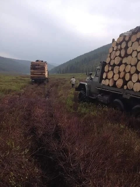 Лесовозы ЗИЛ-131 когда-то были обычными армейскими грузовиками. В Монголии они обрели новую жизнь в качестве самодельных лесовозов.
