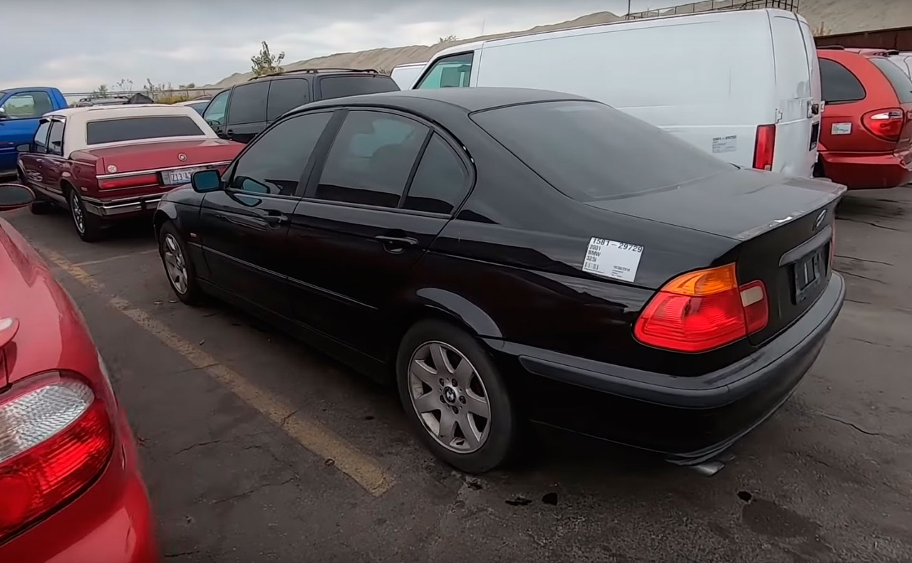 Среди автомобилей, которые ожидают своей очереди на полную разборку, стоит BMW 325i поколения E46, который выглядит совершенно новеньким и приехал на свалку своим ходом.