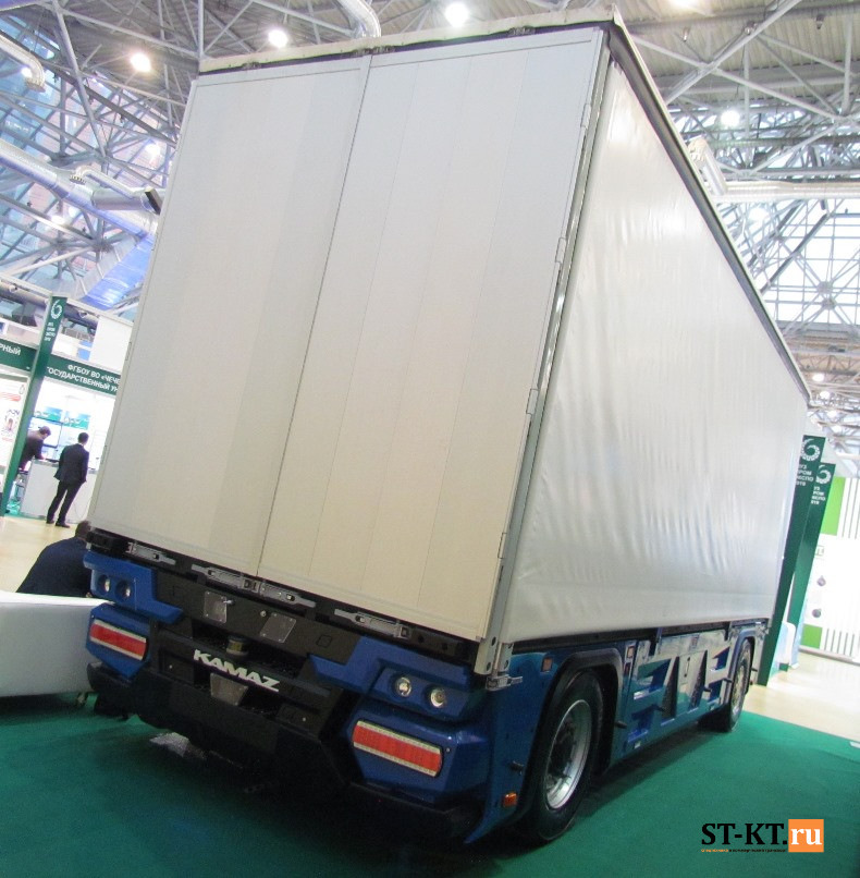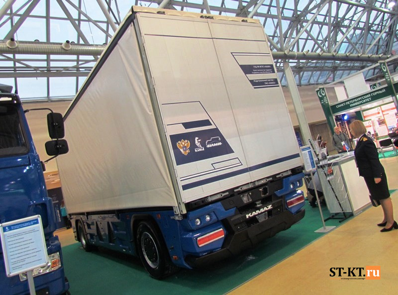 Такая необычная компоновка обусловлена тем, что это транспортное средство пока не предназначено для работы на дорогах общего пользования, а является по сути внутризаводским видом транспорта. Его планируют использовать для доставки каркасов кабин между производственными корпусами без привлечения персонала.