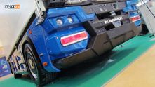 Интересно, что для повышения маневренности все колеса сделаны поворотными. Но при прохождении поворотов на скорости колеса задней оси фиксируются в положении «прямо». Это позволяет избежать опасности опрокидывания загруженного грузовика.