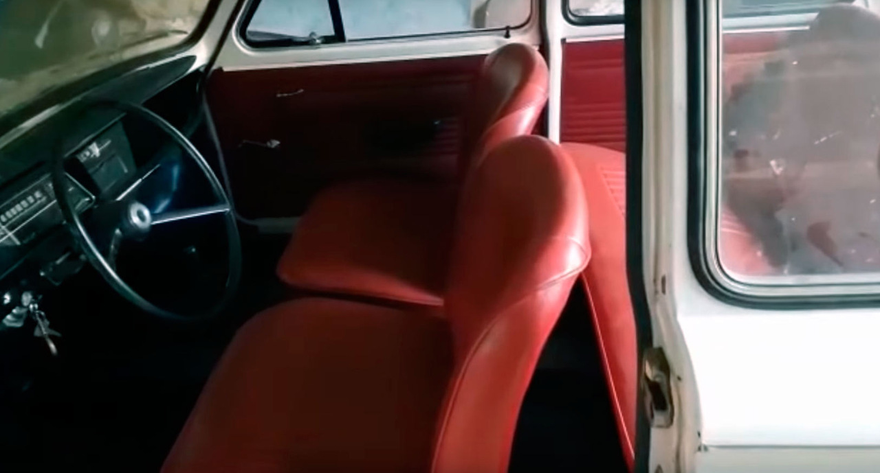 Зато салон сохранился просто в идеальном состоянии и отличается сочетанием белых кузовных панелей и красной отделки. Выглядит довольно шикарно.