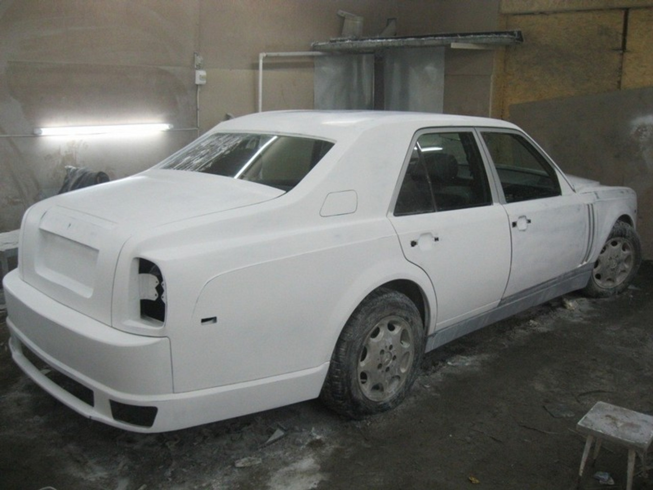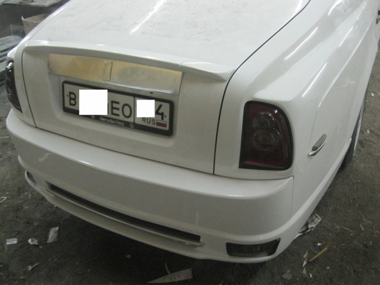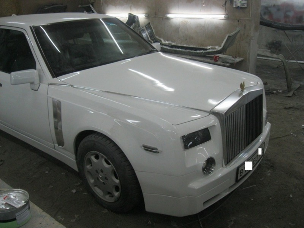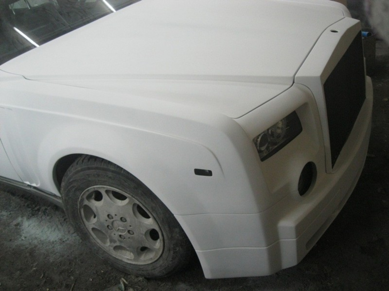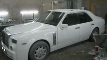 После шпатлёвки, грунта и слоя белой краски копия Phantom стала выглядеть довольно неплохо, однако её решили "украсить" чёрными элементами. Ну это же не какой-нибудь немец от Mansory в конце концов!