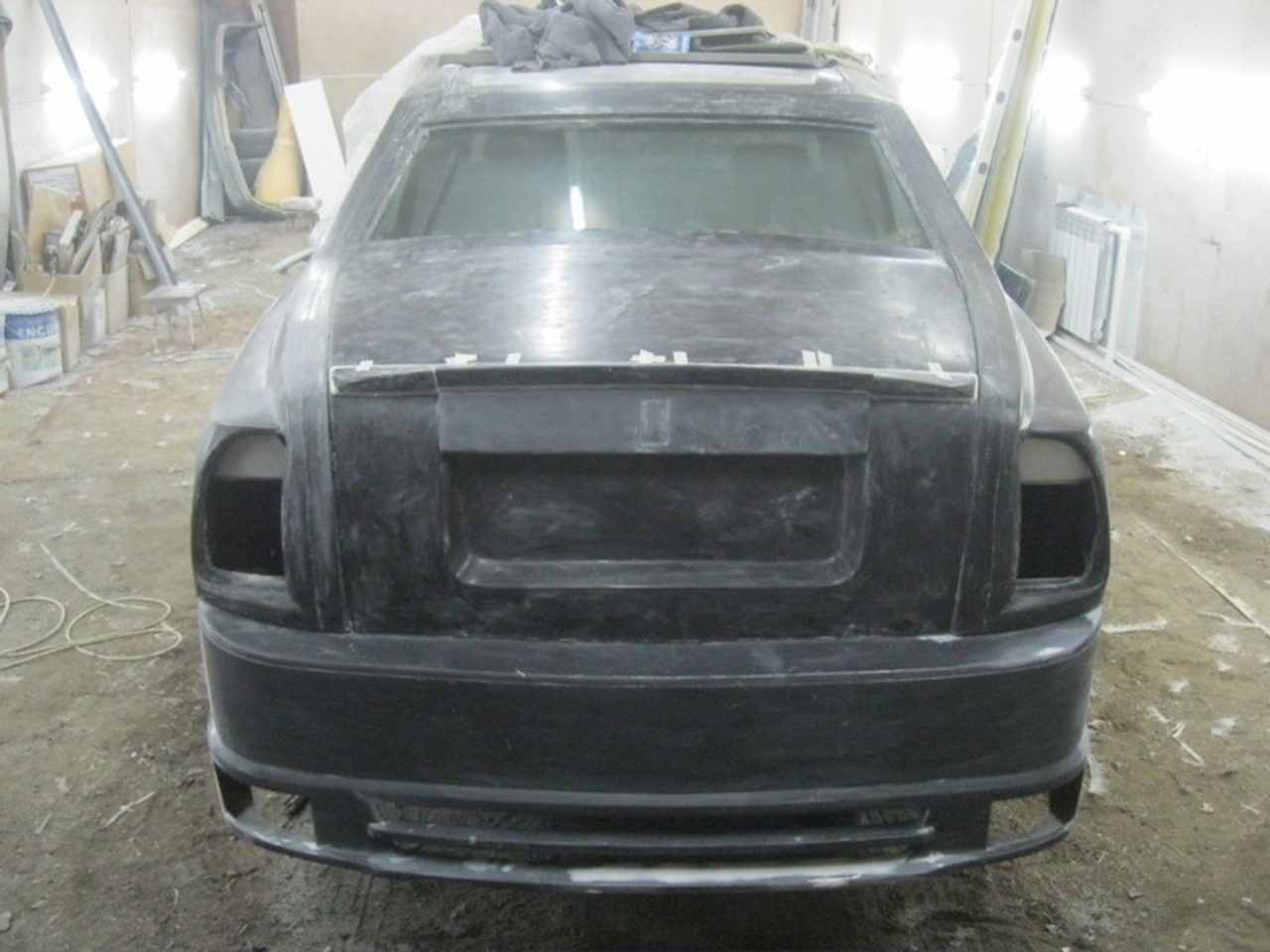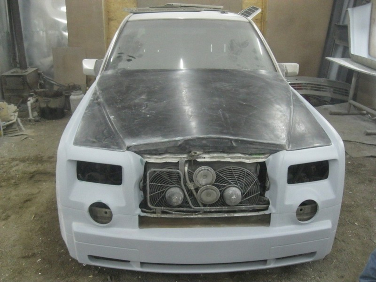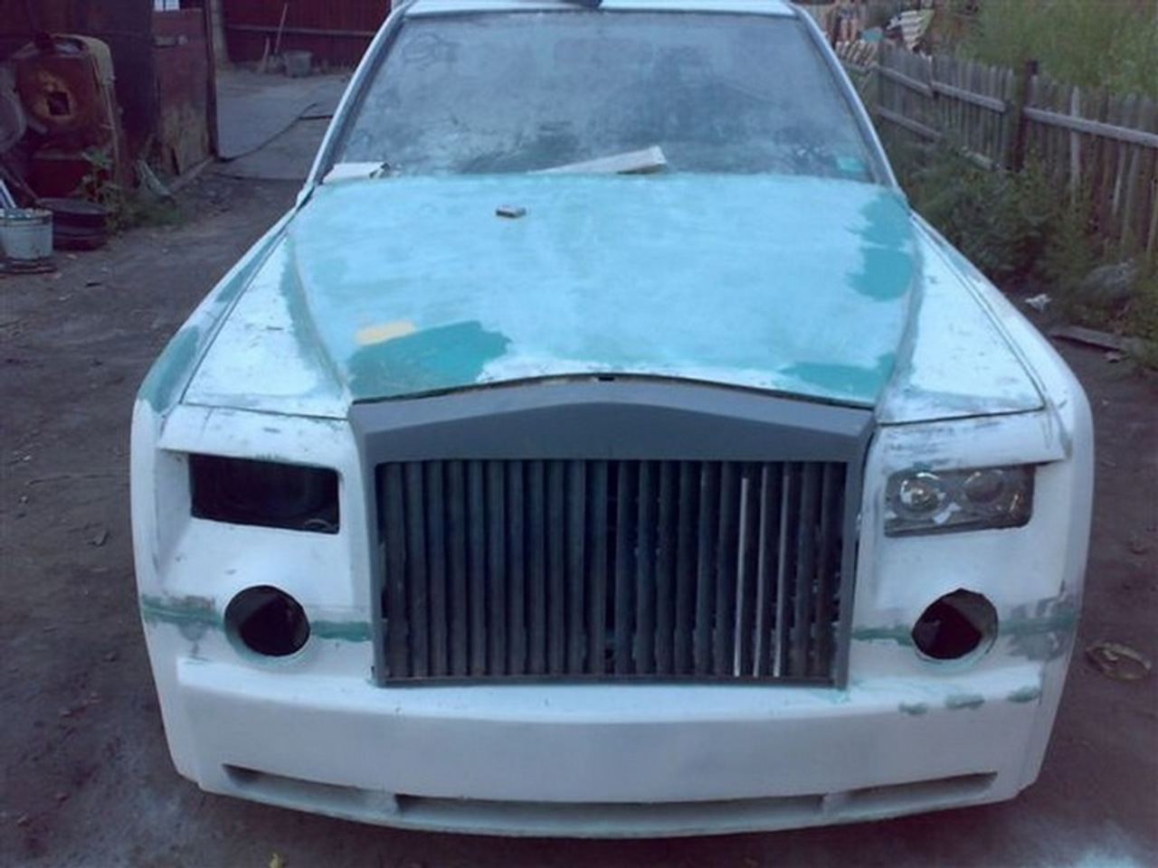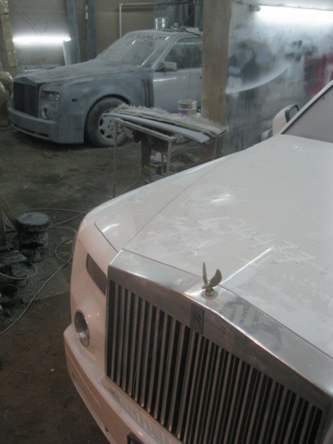 После шпатлёвки, грунта и слоя белой краски копия Phantom стала выглядеть довольно неплохо, однако её решили "украсить" чёрными элементами. Ну это же не какой-нибудь немец от Mansory в конце концов!