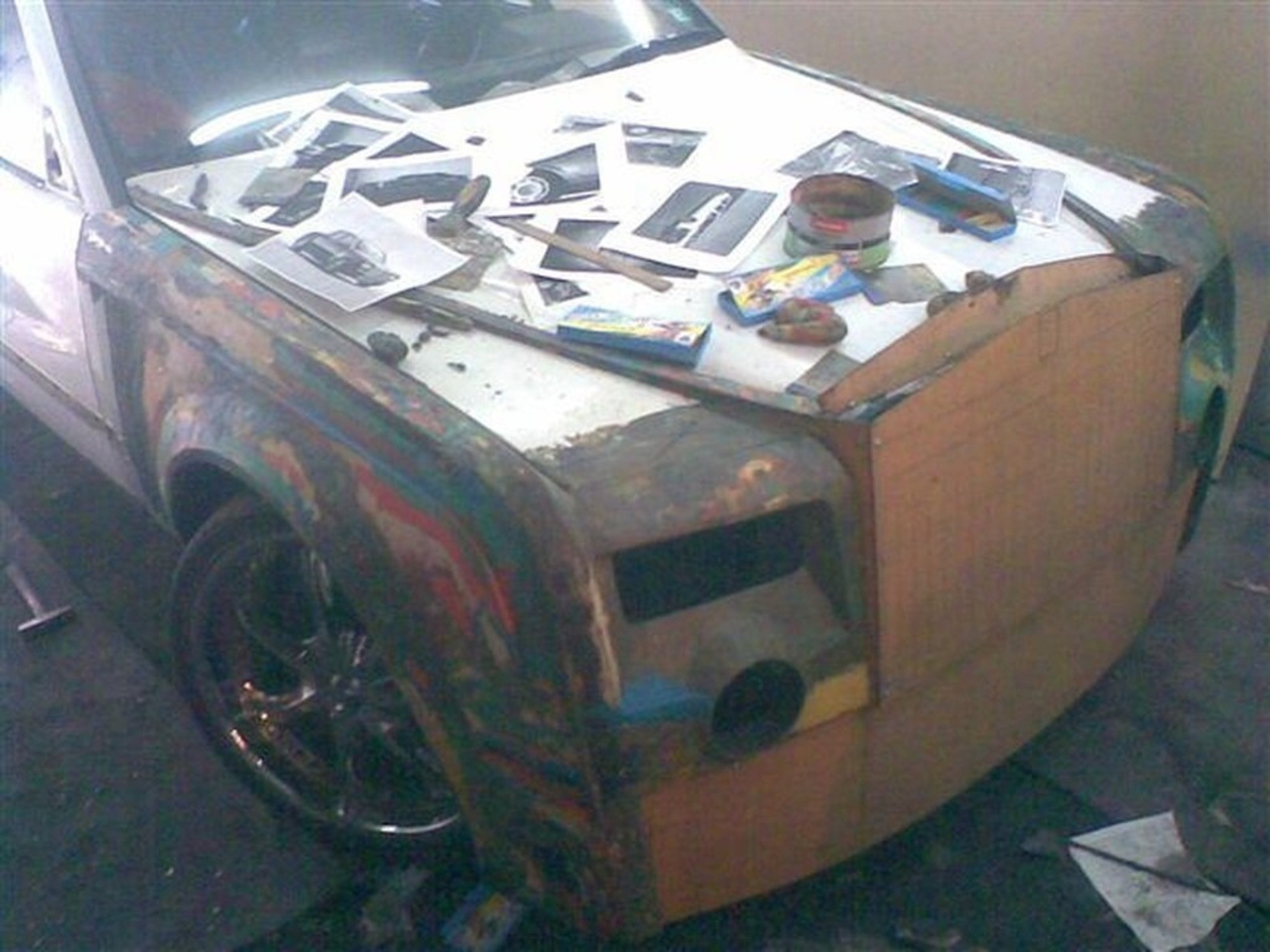 Смотря на фотографии, можно сказать, что тюнеры провели не мало времени, разглядывая снимки Phantom, которые они распечатали на листах формата А4. Парни не совсем попали в пропорции, однако за поднятие линии капота на уровень ведра они заслуживают уважения.
