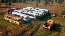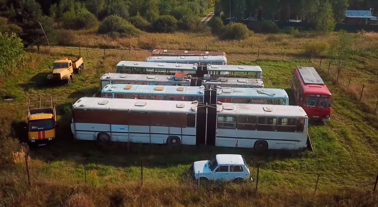 Фактически, это не коллекция, а кладбище автобусов. Съемки дроном показывают, что «экспозиция» включает 7 автобусов (три – ЛиАЗа-677, и четыре – Ikarus разных моделей), а также ГАЗель и КрАЗ из автобусного парка. Еще один Ikarus 260 стоит за территорией участка.