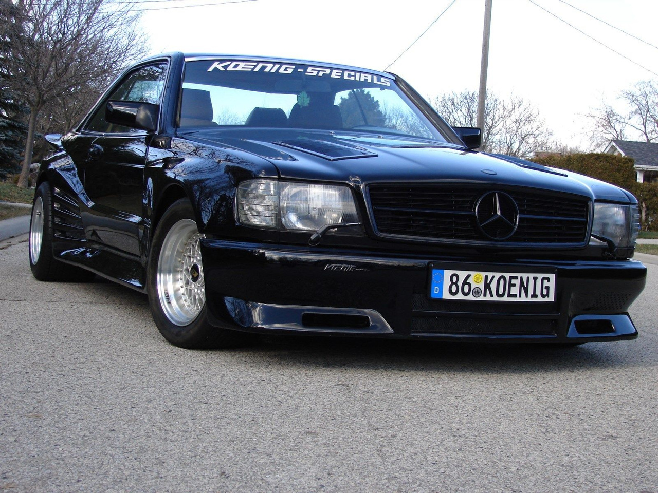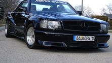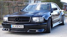 Перед вами один из их великолепных проектов — Mercedes-Benz 500SEC 1986 года, прошедший полный курс доработок в Koenig, включая установку двух турбин для его 5.6-литрового M117 V8, которые довели мощность двигателя до 400 л.с. У него есть обвес, схожий с Бэтмобилями, и колесные диски достаточно глубокие, чтобы приготовить в них куриный суп.