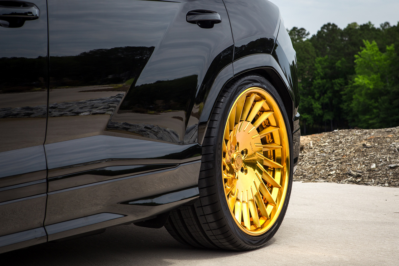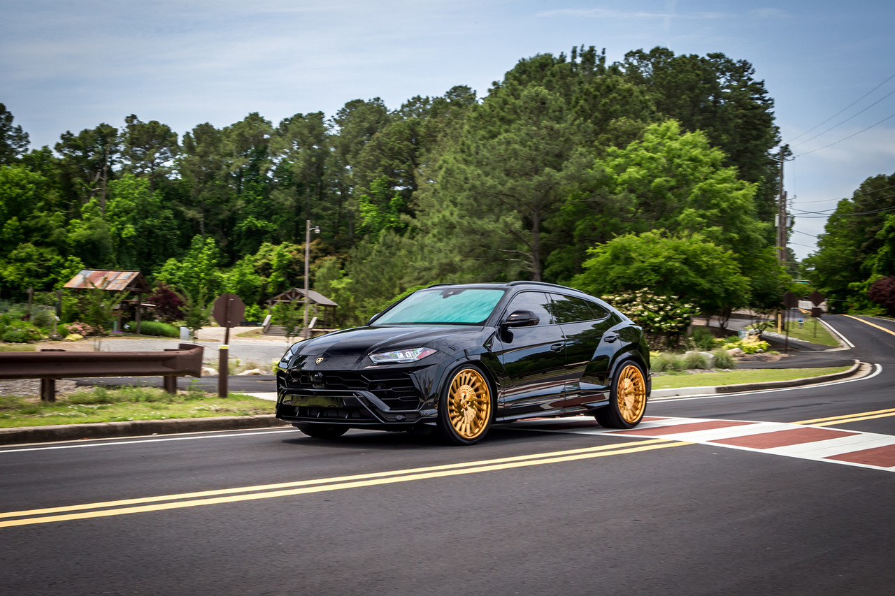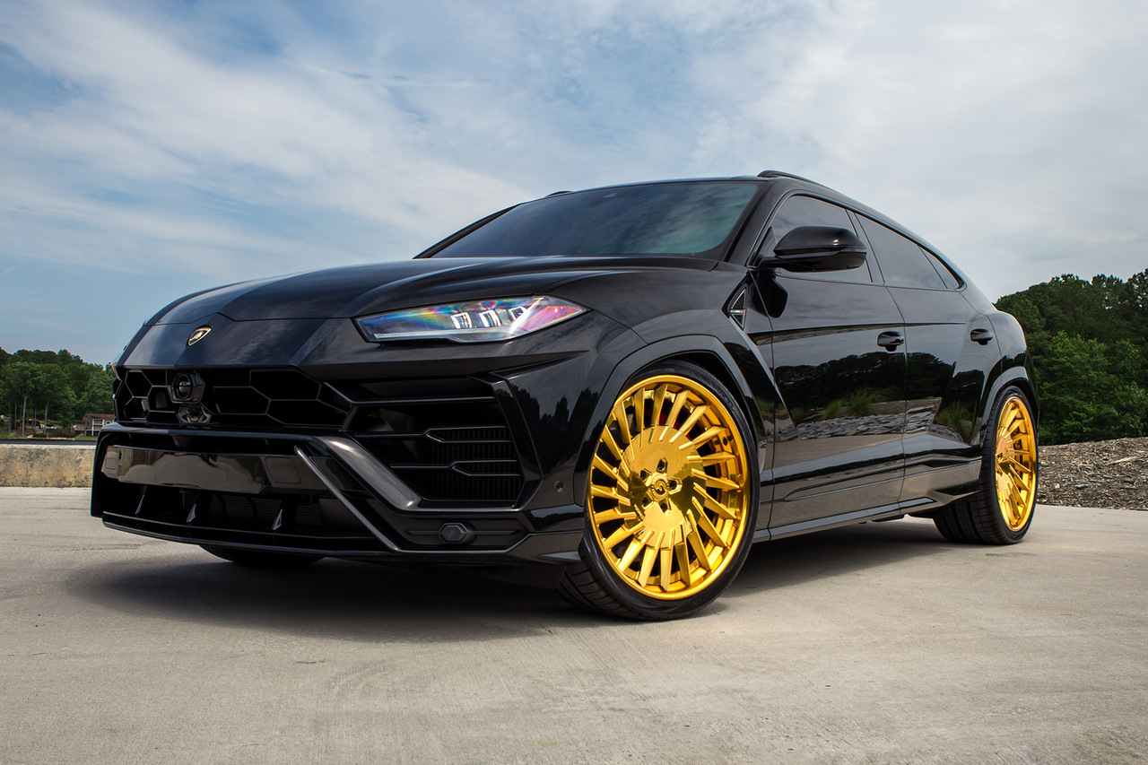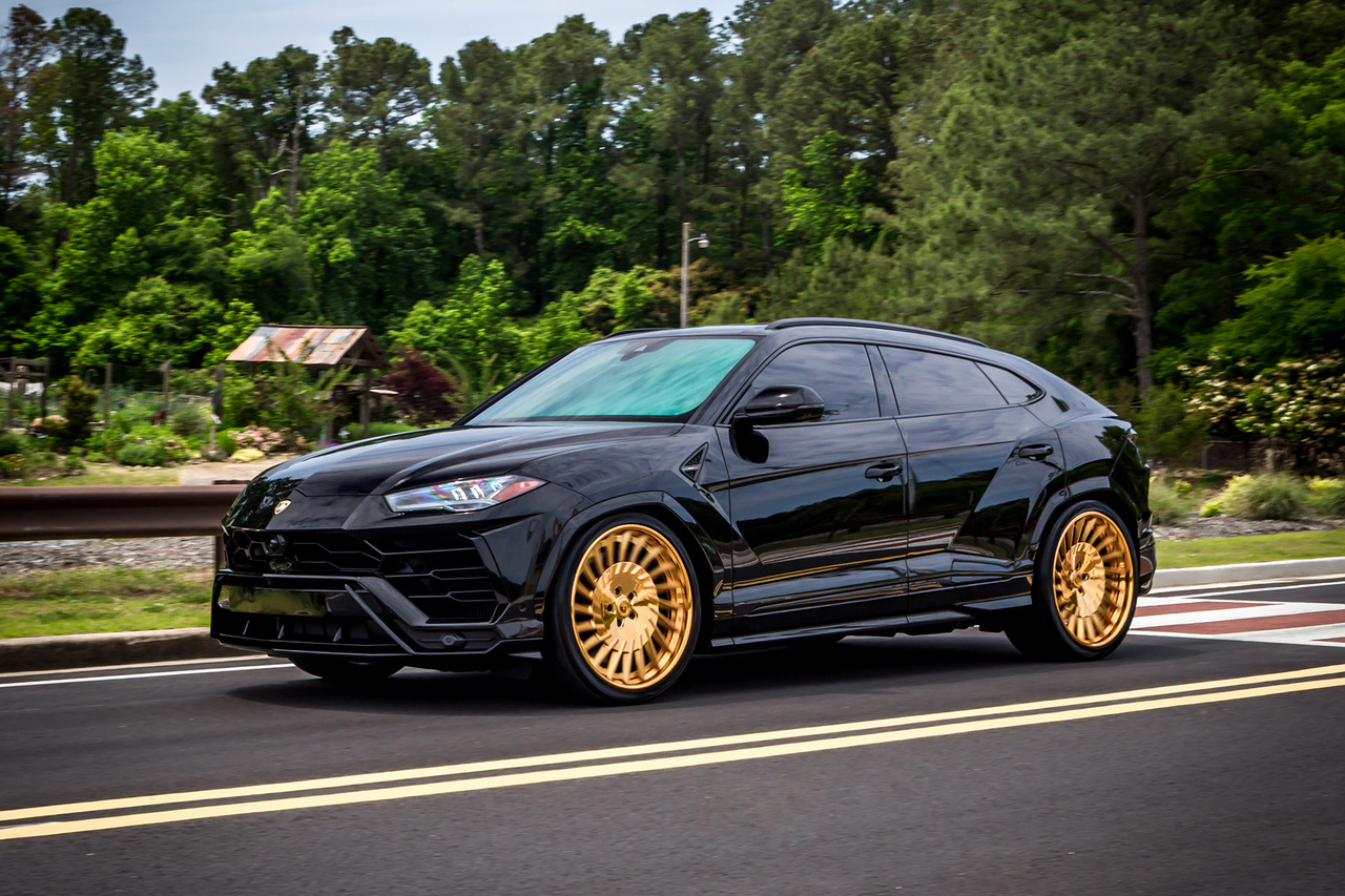 Lamborghini Urus получил комплект необычных колесных дисков Forgiato TEC 3.4 серии Tecnica. И так как взгляд больше не цепляется за блестящие элементы кузова, эти колеса золотистого цвета мгновенно привлекают внимание. Эффект создается просто потрясающий. Кстати, небольшим дополнительным штрихом стала золотая отделка логотипов спереди и сзади.