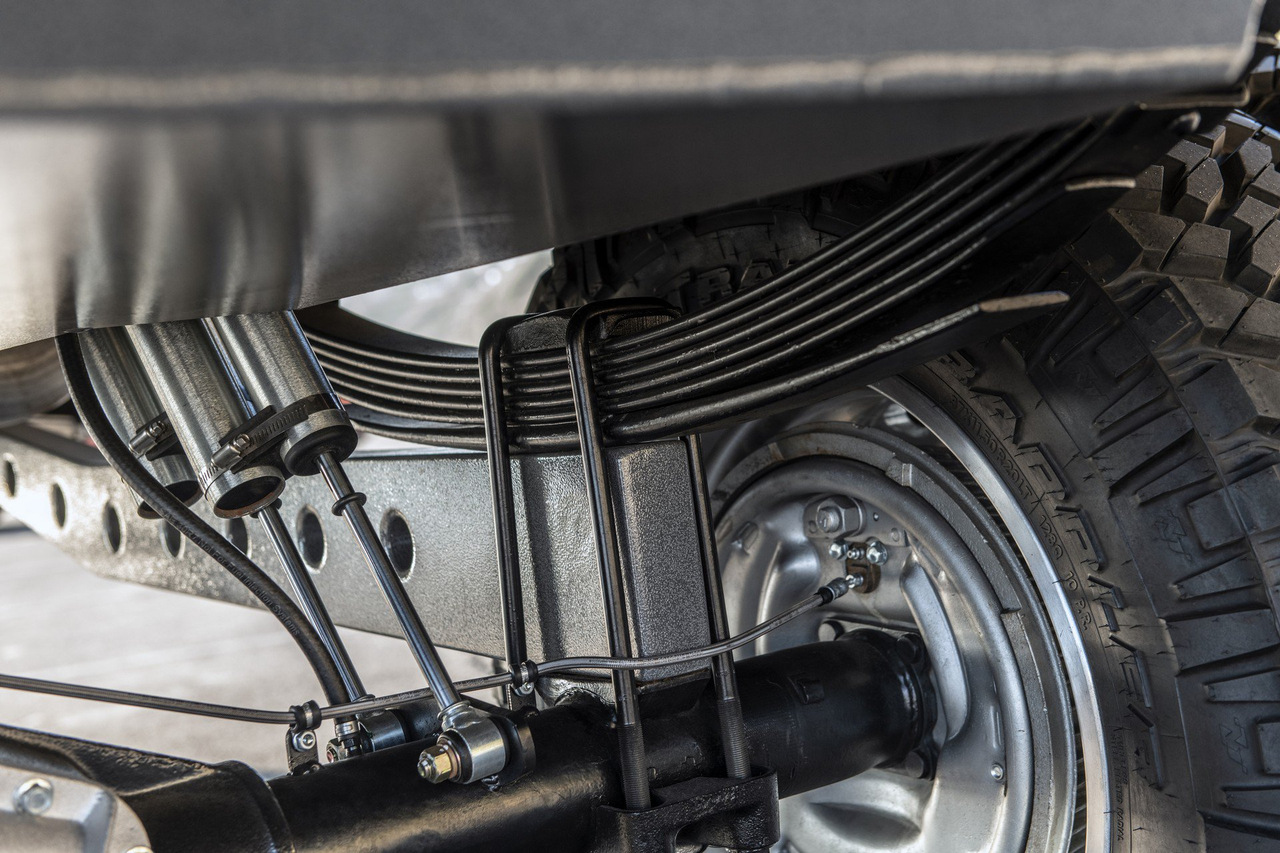 Среди других примечательных особенностей — жесткая подвеска с листовыми рессорами Skyjacker, амортизаторы Bilstein, топливный бак объемом 227 литров, модернизированное рулевое управление и 20-дюймовые колеса с 37-дюймовыми шинами Nitto Trail Grapplers.