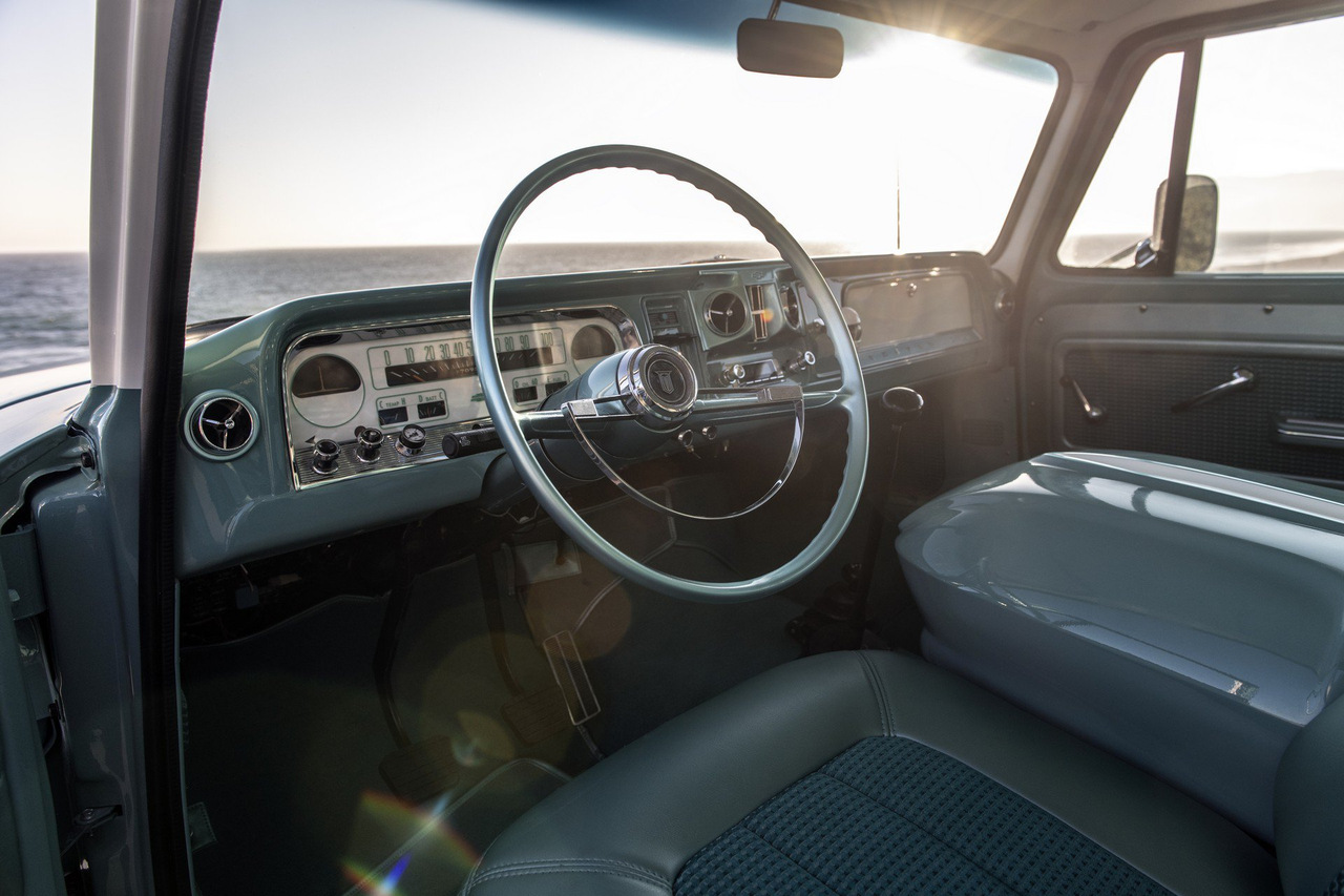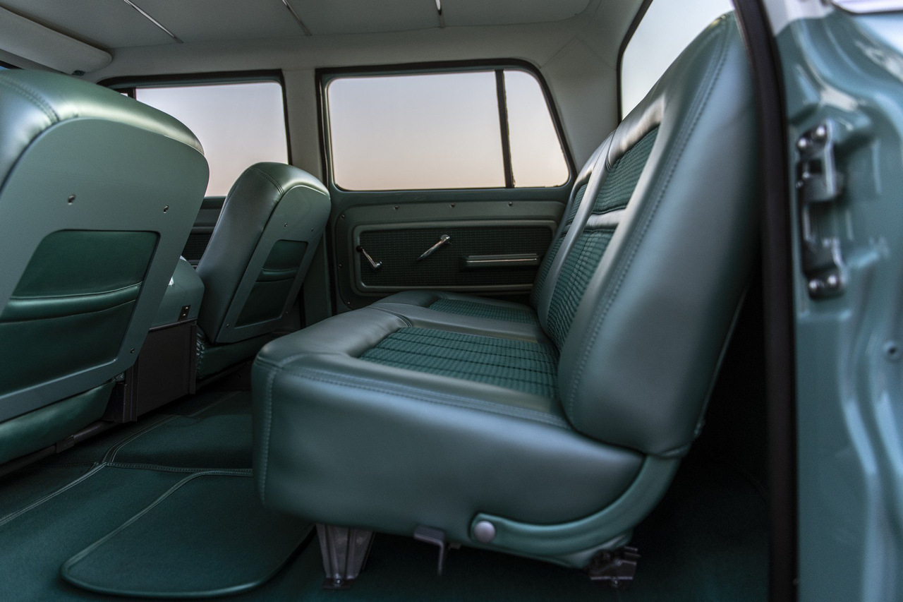 Ретро-дизайн продолжается в салоне. Тут вы обнаружите переднюю панель, окрашенную в цвет кузова, олдскульные приборы и зеленые сиденья, обшитые в сочетание винила и ткани. Они имитируют те, что использовались в 1966 году.