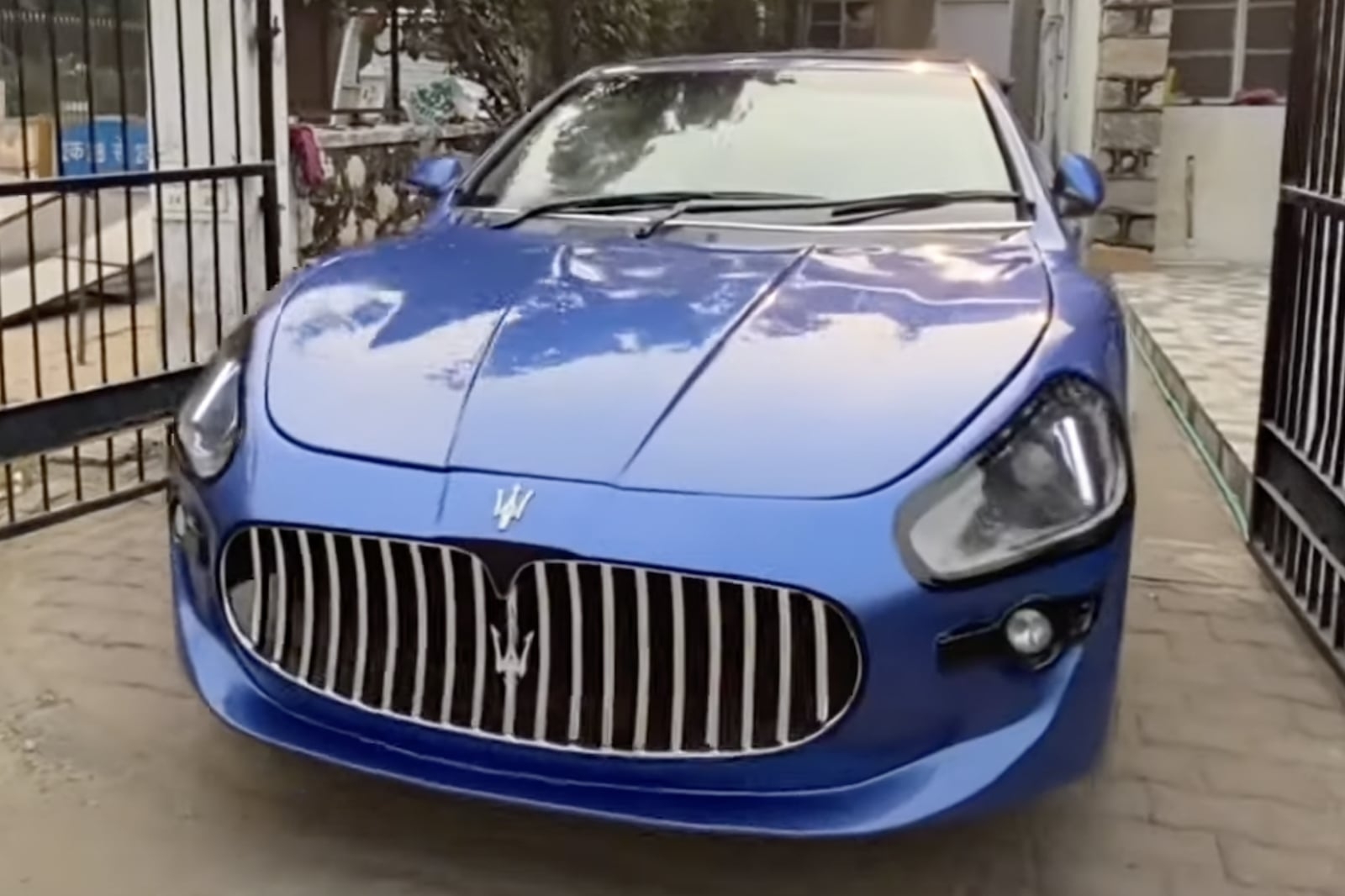 Спереди появилась большая решетка радиатора в стиле Maserati, рядом с которыми находятся самодельные фары с линзовой оптикой, довольно сильно отличающиеся по форме от оригинала.