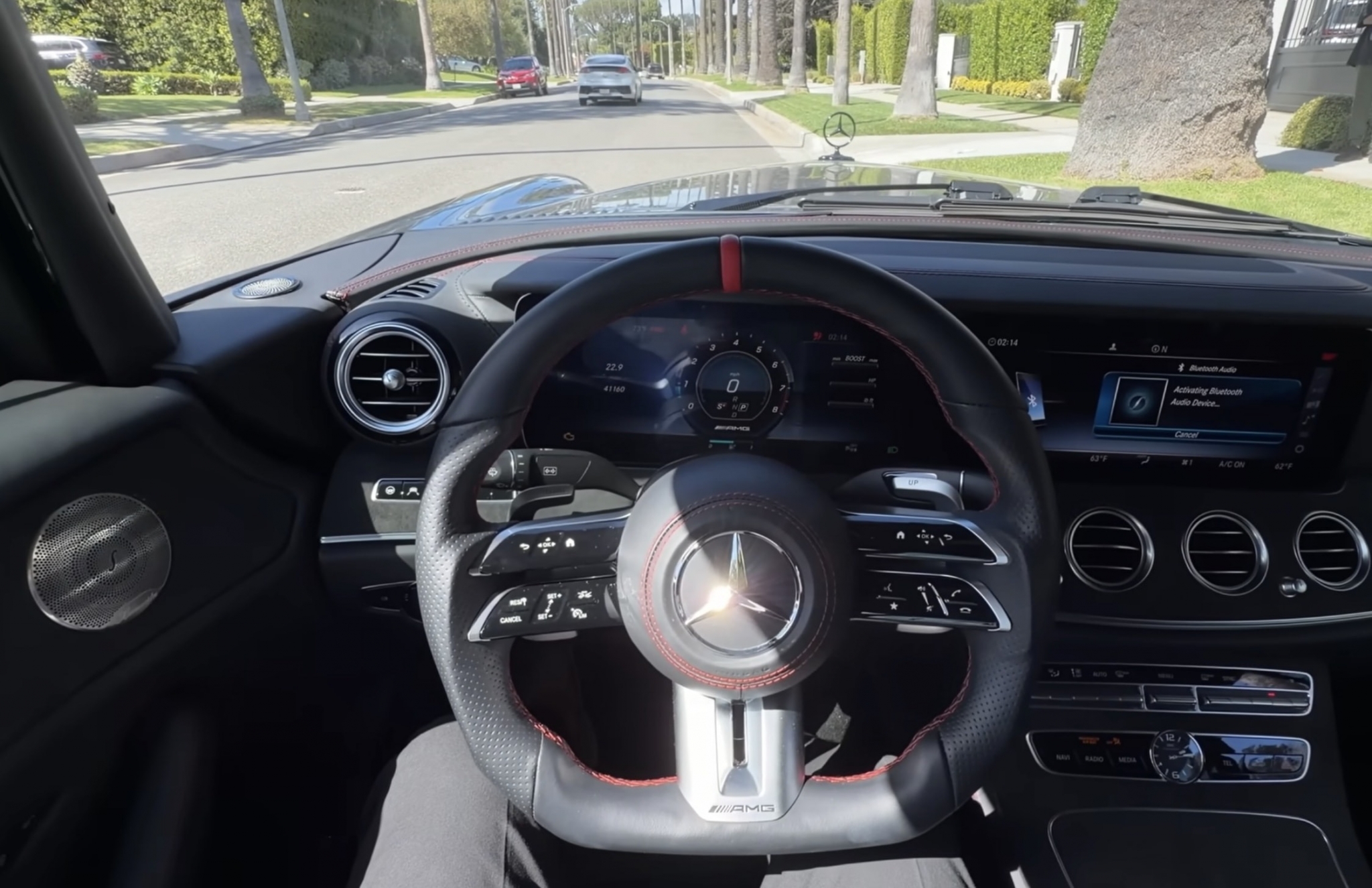 Цифровая панель MBUX тянется единым стеклянным экраном, объединяя приборы и мультимедиа, но при этом сохраняется ощущение классического салона 600-го. Всё продумано до мелочей, но агрессия ощущается даже в покое — автомобиль буквально меняет атмосферу вокруг.