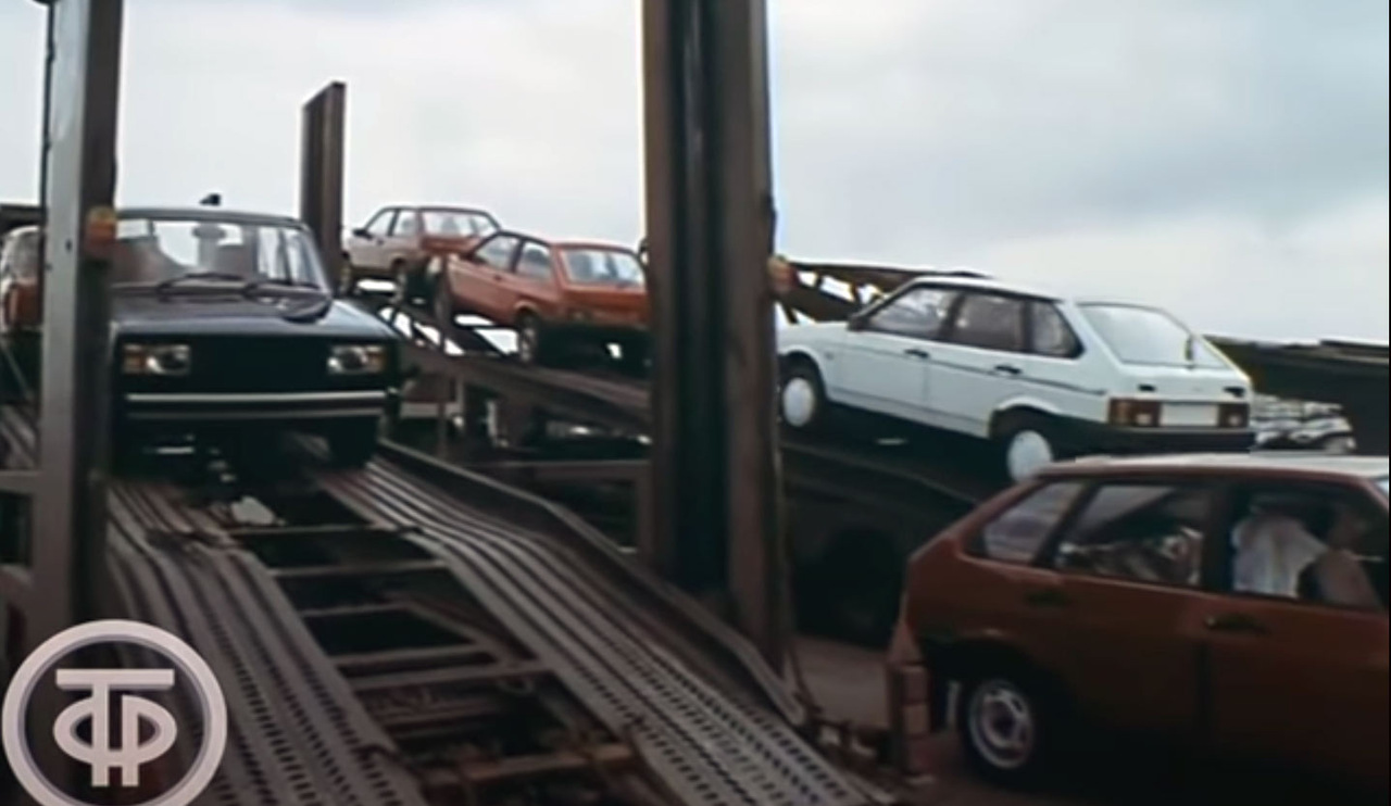 Вы увидите все этапы отправки советских автомобилей Lada к иностранным покупателям: отгрузка на заводе, разгрузка в морском порту, предпродажная подготовка в дилерских центрах.