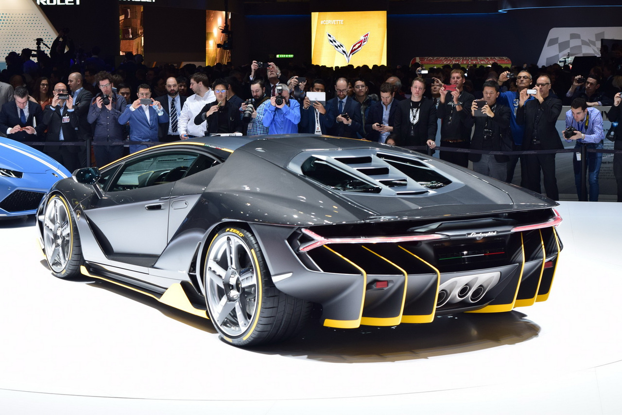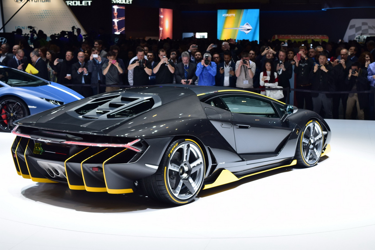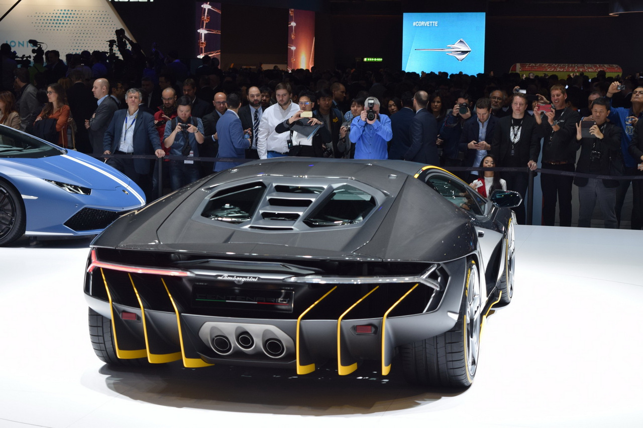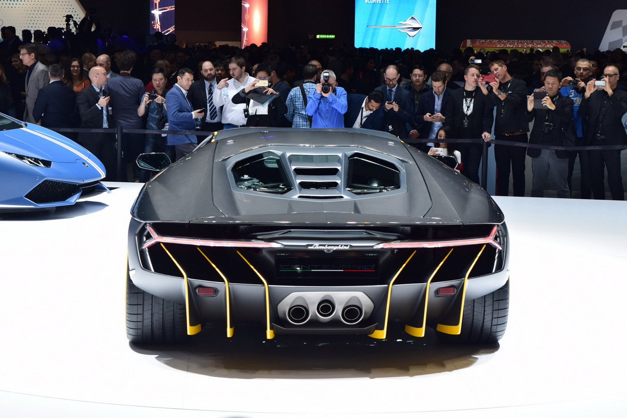 Centenario шире своего предшественника Aventador.В целом автомобиль более аэродинамичен,у него есть поднимающееся заднее антикрыло, гипертрофированный диффузор, которые только добавляют суперкару изюминки. Но самое главное - Centenario стал первым автомобилем Lamborghini с подруливающими задними колёсами. На разгон до сотни автомобилю потребуется всего 2.8 секунды, а до 300км/ч - 23.5 секунды.