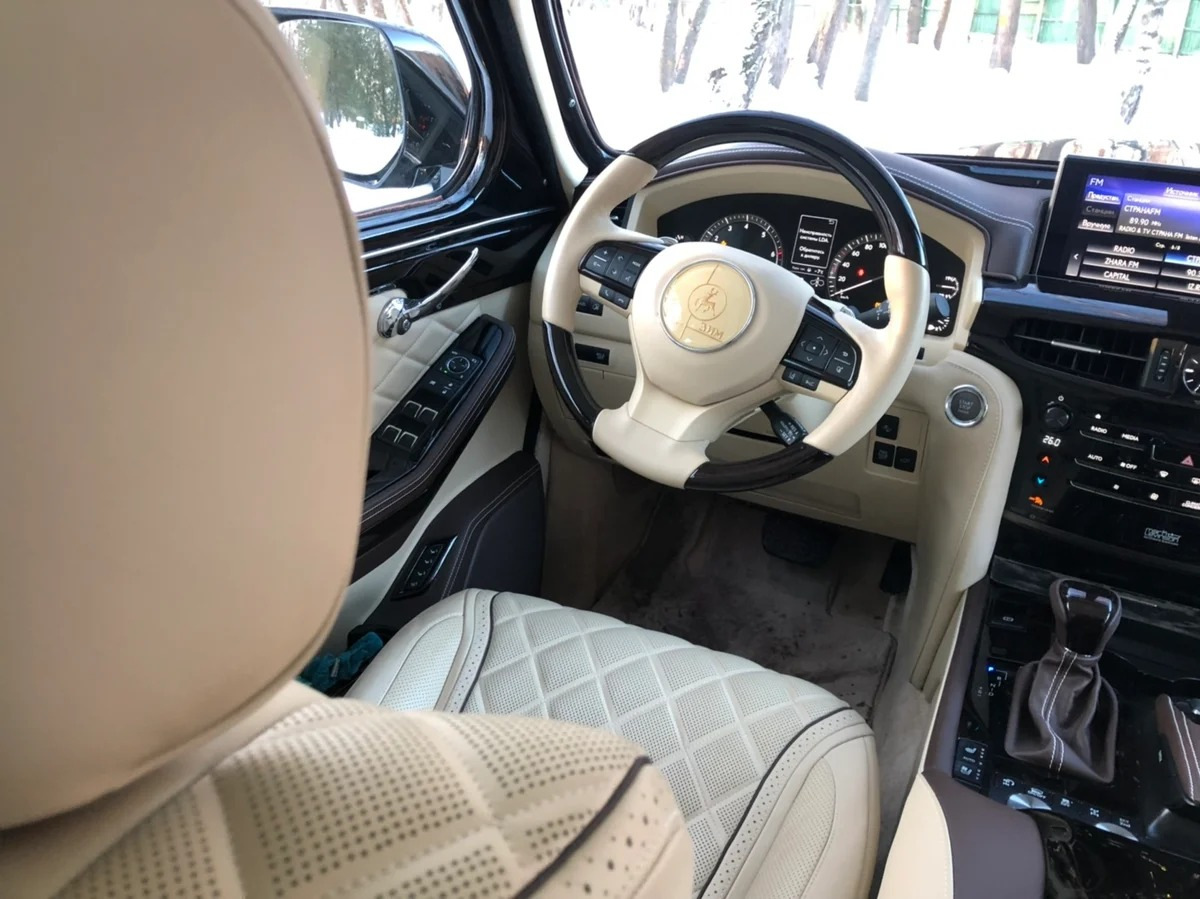 Передняя панель полностью позаимствована у Lexus LX570, но рулевое колесо получило оригинальную пластиковую кнопку с центральной части руля ГАЗ-12 ЗИМ. Вот только выглядит она тут явно не к месту. Можно было интегрировать её более элегантно.