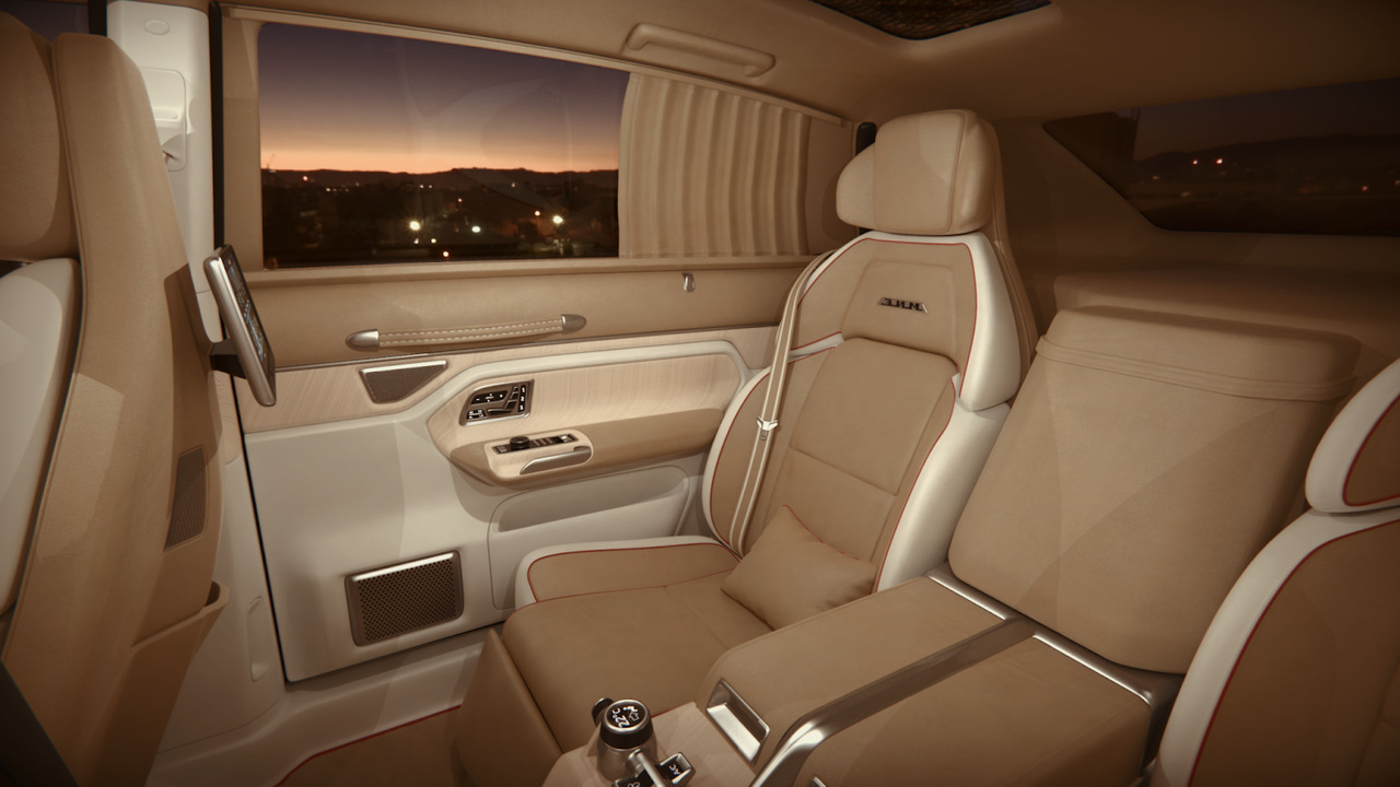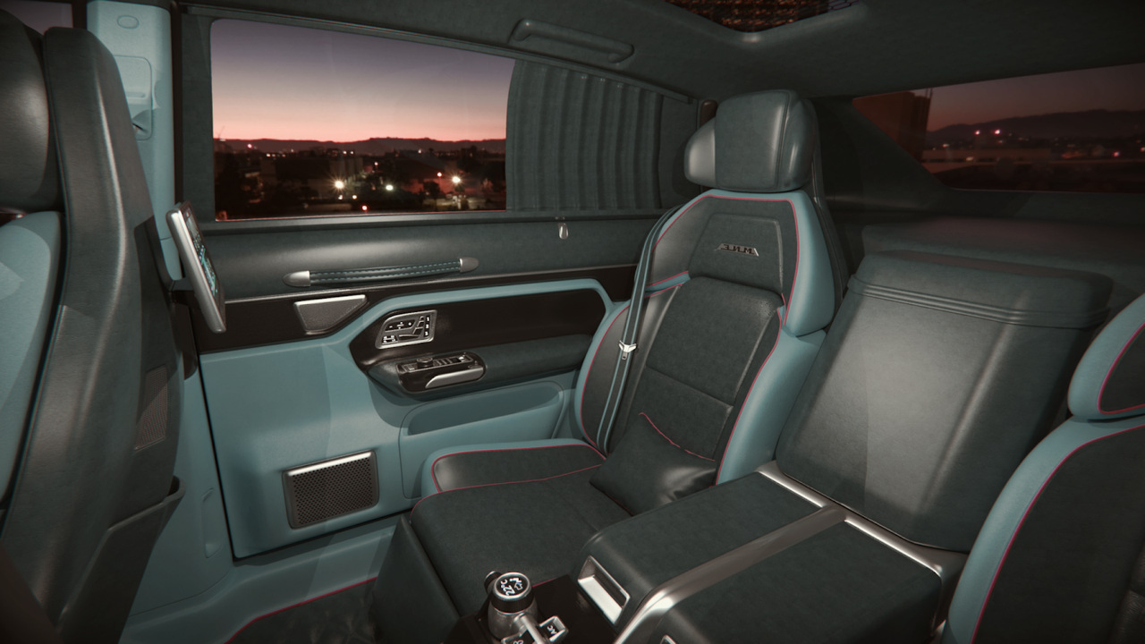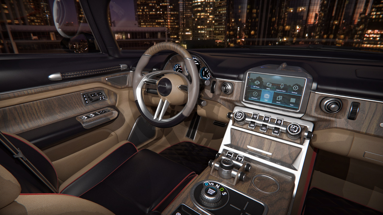 Внутри ощущение ретро-стиля практически полностью растворяется. Салон больше напоминает Porsche Panamera нежели старый советский лимузин. К классическим элементам можно с натяжкой отнести рулевое колесо с пухлой ступицей, дефлекторы системы вентиляции, а также кожаные петли на дверях.