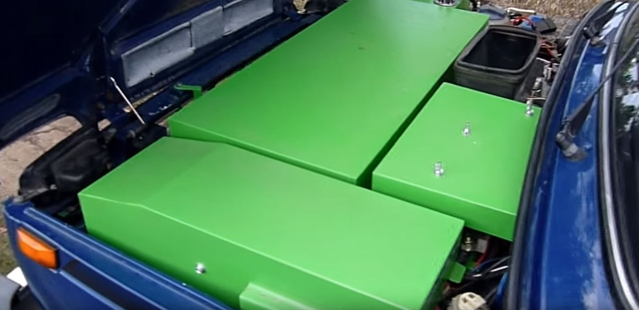 Под капотом вы не обнаружите штатного четырехцилиндрового двигателя. Вместо этого тут находятся три ярко-зеленые герметичные бокса, которые скрывают всю важную электронику от попадания влаги.