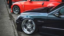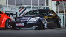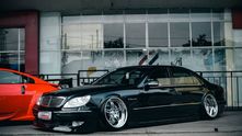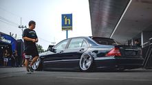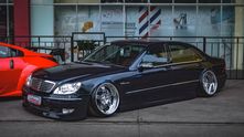 Как вы уже могли догадаться, глядя на фотографии, этот экземпляр (с правым рулем, кстати!) получил пневмоподвеску, которая позволила опустить кузов до асфальта. В сочетании с огромными кастомными хромированными колесными дисками S65 AMG стало не узнать.