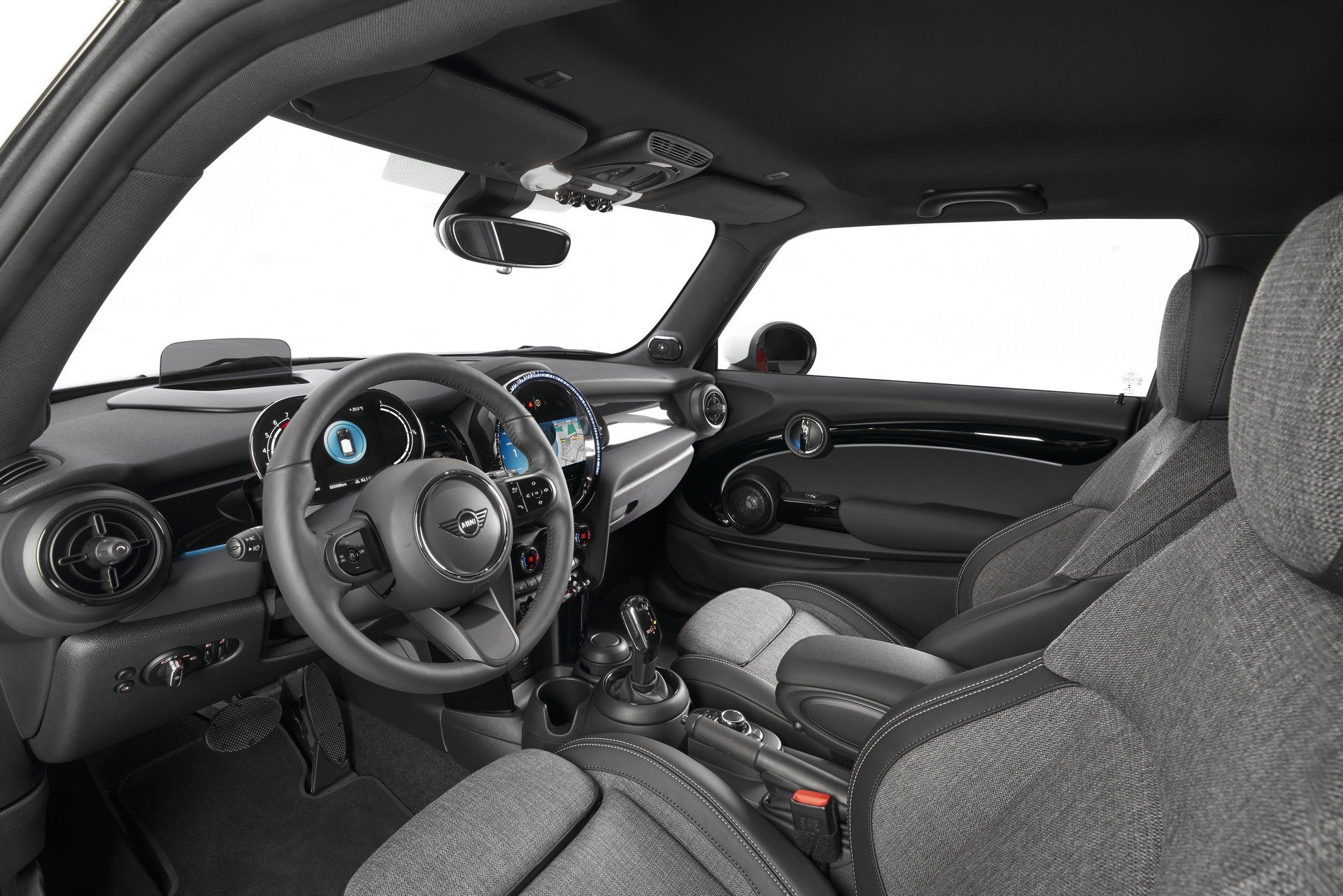 Новые Mini можно немного кастомизировать. Например, выбрать цвет крыши. Причем она может быть даже с градиентом: одним из вариантов является «цветовой градиент от синего Сан-Марино через жемчужно-морской оттенок до черного как смоль».