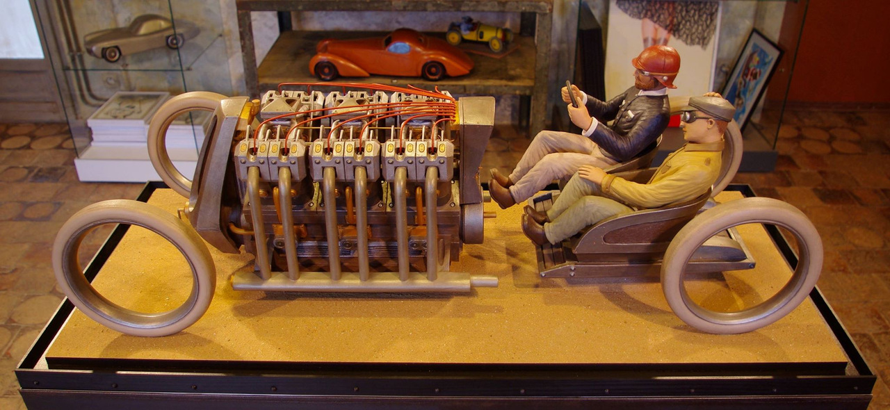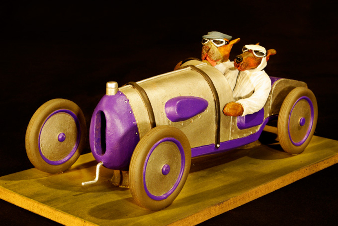 Кроме тематики автогонок начала 20-ого века есть целая серия транспортных скульптур "романтико-эротической" направленности ... француз же !