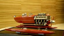 В его методе показа: мощь - олицетворяет мощный спортивный двигатель ( V-8-V12), смелость - олицетворяют фигурки экипажа , а скорость - колеса.