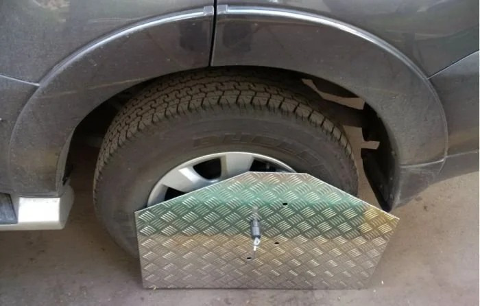 Но оказывается есть чуть ли не 100% вариант. Её придумал московский финансист Владислав Тумоланов. Специальная пластина закрывает одно из колес автомобиля.
