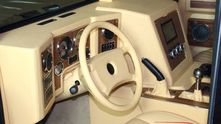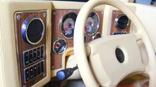 Всё что можно обшито бежевой кожей или отделано натуральным деревом. Поражает внимание к мелочам: даже небольшие функциональные панели вроде управления электроприводом сидений получили деревянную подложку с хромированной окантовкой.
