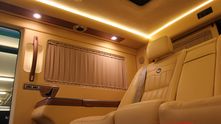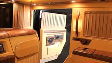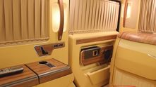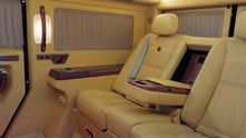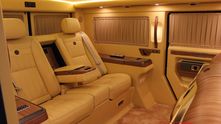 Сами сиденья для VIP-пассажиров расположены в задней части салона. Каждое имеет индивидуальные электрорегулировки, подогрев и вентиляцию. По бокам от них — широченные подлокотники с подстаканниками и многофункциональными пультами управления, которые отвечают за электростеклоподъемниками, бар, телевизор, вентиляцию и связь с водителем.