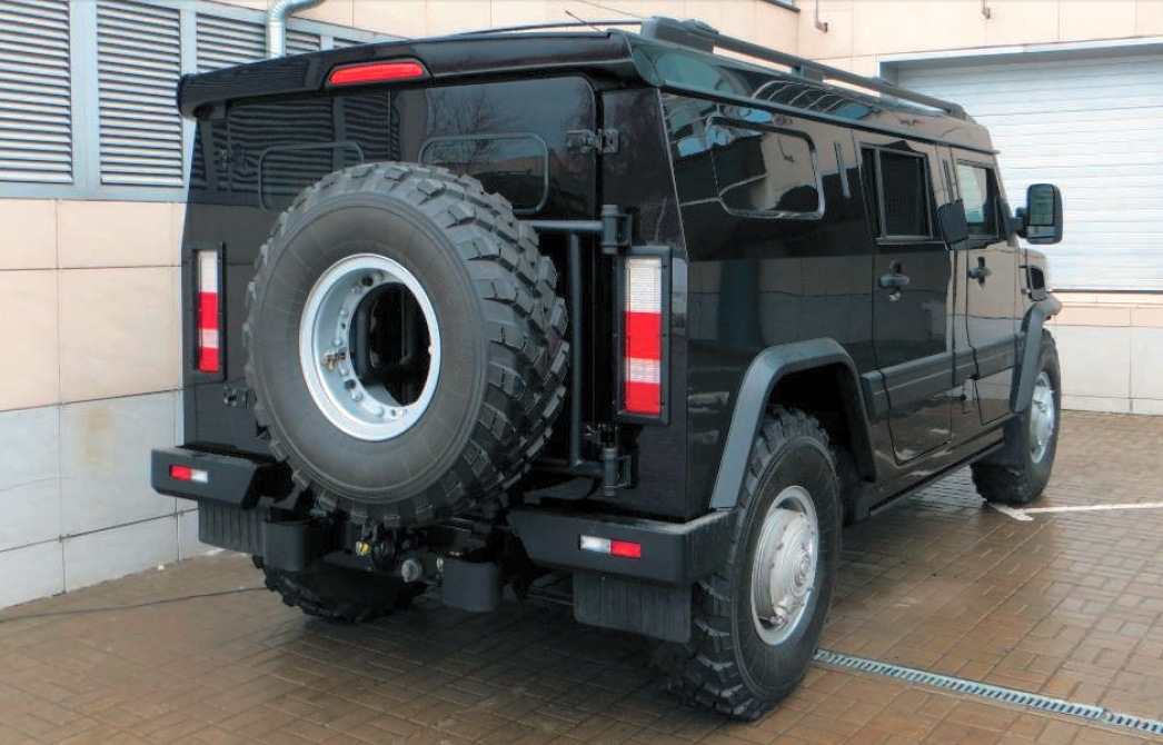 Внедорожник получил новый капот, решетку радиатора, блоки-фар, накладки на колесные арки, молдинги на бортах, накладки на передние стойки крыши, козырек над лобовым стеклом, а также заднюю светодиодную оптику, которая сделала «Тигр» похожим на Hummer H2. Можно смело сказать, что внешне автомобиль преобразился на 100%, став именно таким, каким его хотят видеть богатые покупатели.