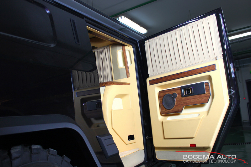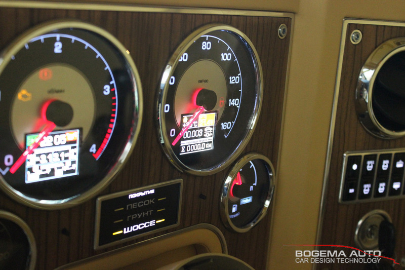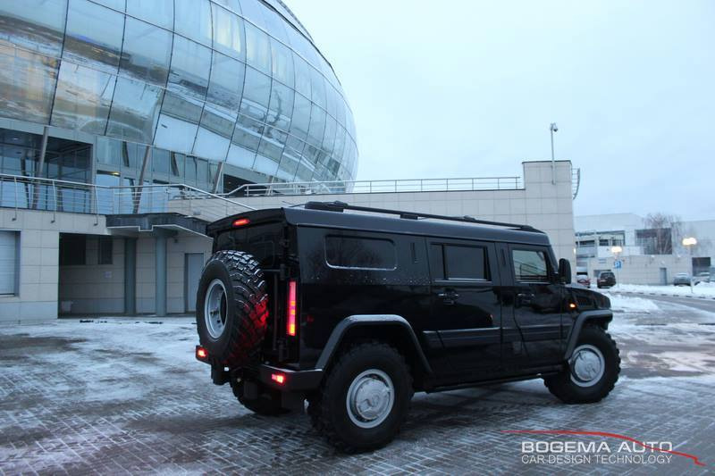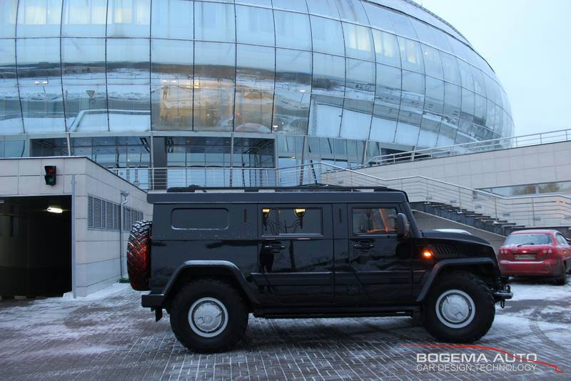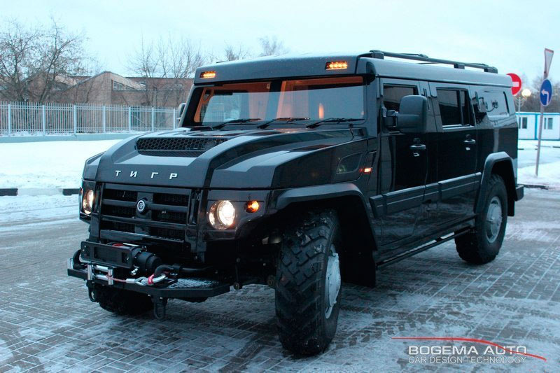 Серьезную доработку внедорожника «Тигр» провела московская мастерская с пафосным названием «Богема Авто». Судя по всему, ни один элемент экстерьера и интерьера не остался без внимания.