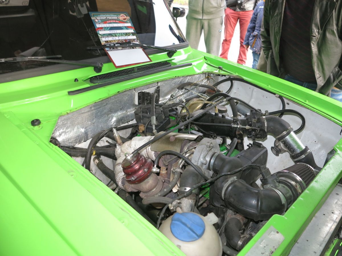 Но самое любопытное у Турбо Москвича, конечно же, под капотом. Тут стоит 1,5-литровый 16-клапанный мотор от ВАЗ-2110, который дополнен «тойотовской» турбиной с давлением 0,8 бар и интеркуллером от BMW. Такой сетап позволил получить отдачу в 150 л.с., что очень много для Москвича, но совсем не впечатляет по современным меркам. Поэтому в планах поставить турбину с давлением 1,5-2 бара, которая обеспечит мощность 300-400 л.с.
