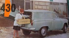 Таким образом, фургон был освоен, когда базовый седан уже носил марку «Москвич-407»: грузовой вариант увидел свет с 45-сильным верхнеклапанным мотором. Новинка отличалась от модели М-400-422 паспортной грузоподъемностью, выросшей с 200 до 250 кг. По прочности и герметичности цельнометаллический кузов не шел ни в какое сравнение со своим деревянным предшественником. В 1958 и 1959 годах завод выпускал ровно по 707 автомобилей М-430 в год.