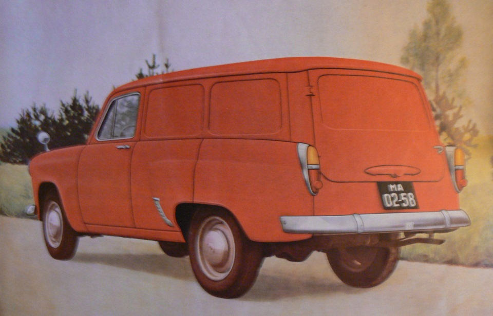Во второй половине 50-х годов на Московском заводе малолитражных автомобилей (МЗМА) был освоен серийный выпуск новых «Москвичей» с тремя типами кузова: пассажирский четырехдверный седан, грузопассажирский пятидверный универсал и грузовой трехдверный фургон.