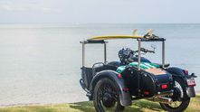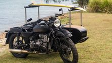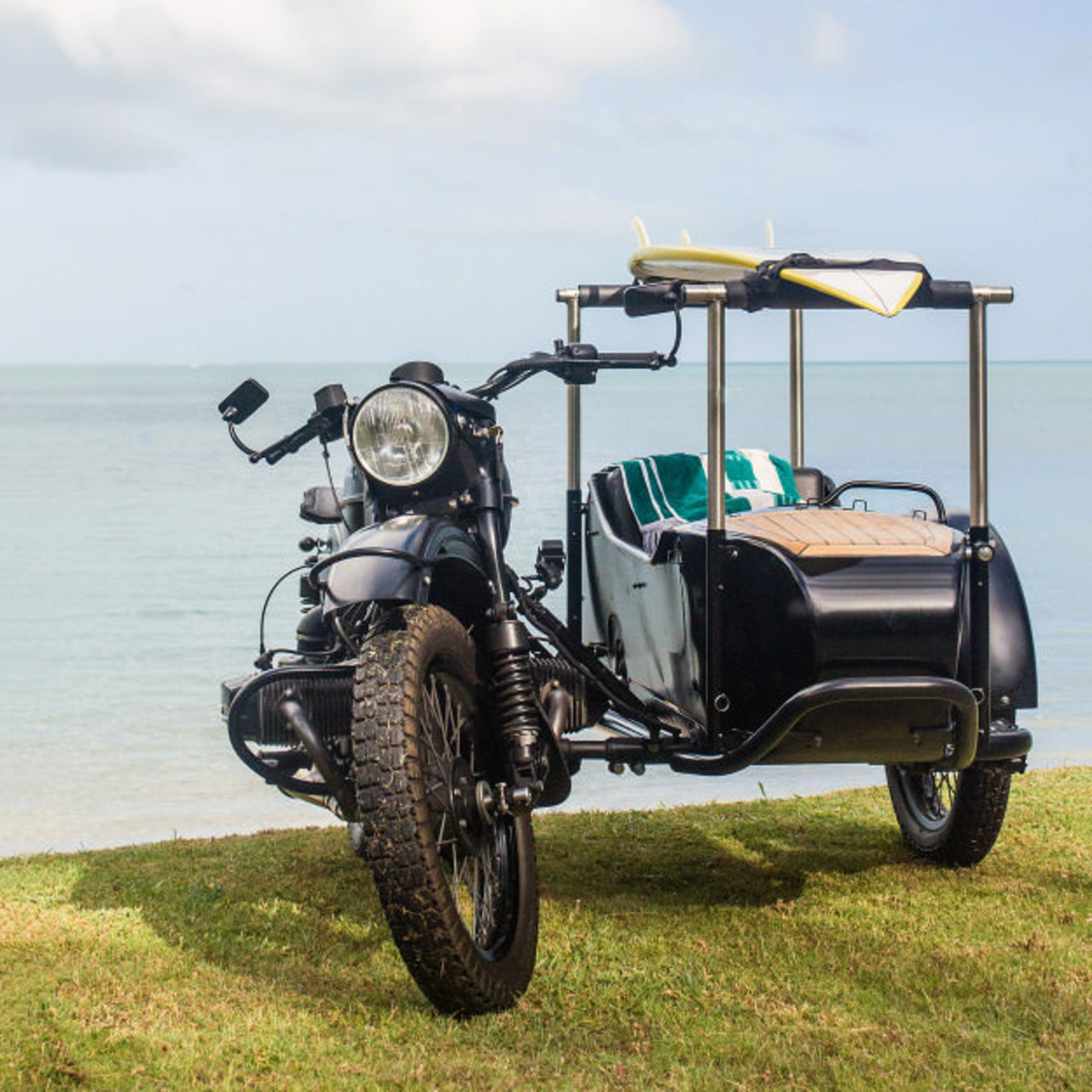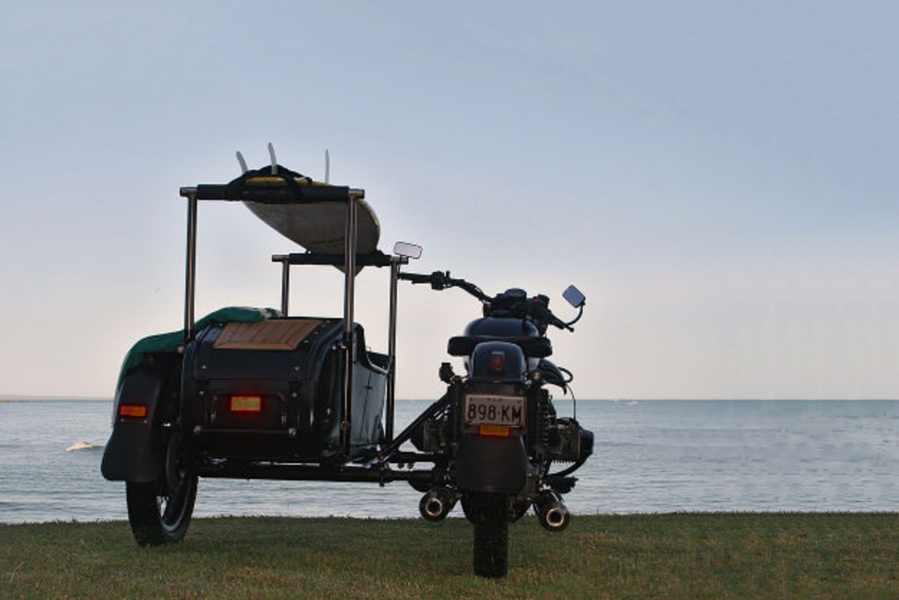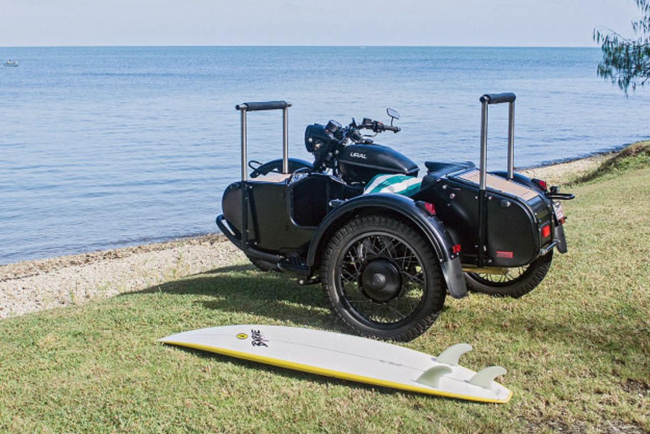 С эстетической точки зрения, мотоцикл прекрасен даже в стоковом виде, однако британец Питер Адамс решил построить такой Урал, который можно без сомнений возить на выставки. Целью этого проекта была постройка мотоцикла, на котором можно катать любимого пса и возить доску для серфинга.