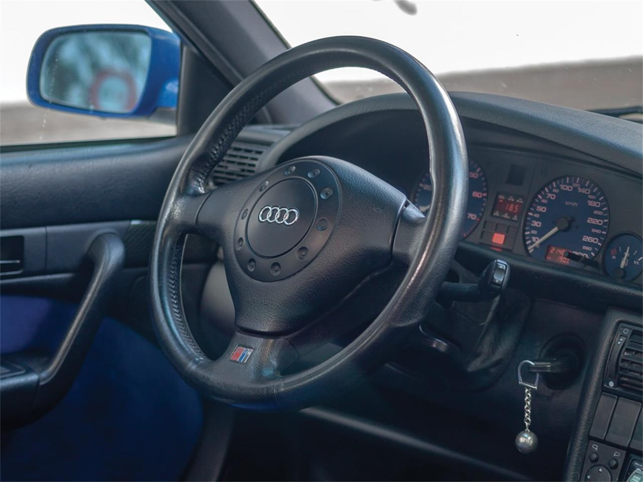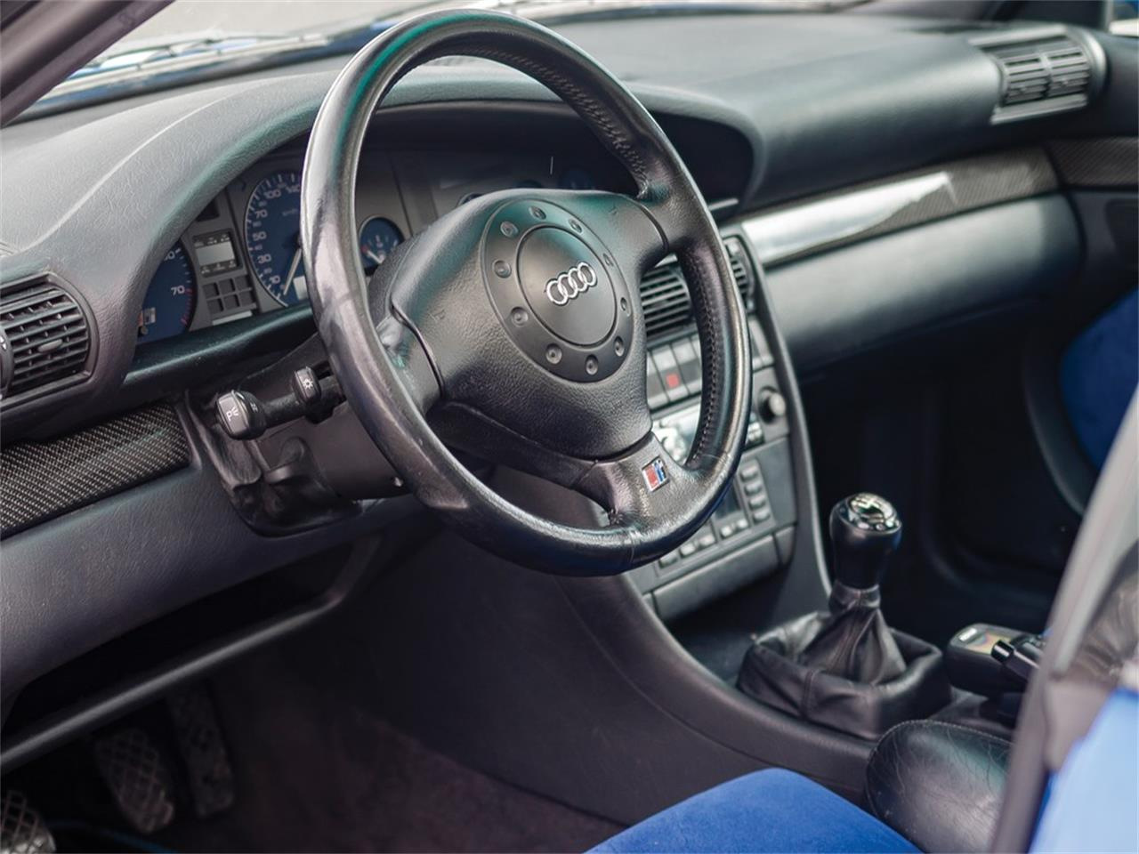 Всего было выпущено 97 экземпляров Audi S6 Plus, и это — один из немногих, окрашенных в редкий цвет Nogaro Blue. Он также обладает полным комплектом отделки из углеродного волокна, 17-дюймовыми легкосплавными дисками Avus, люком с электроприводом, мобильным телефоном и сиденьями с памятью, обшитые черной кожей и голубой алькантарой.