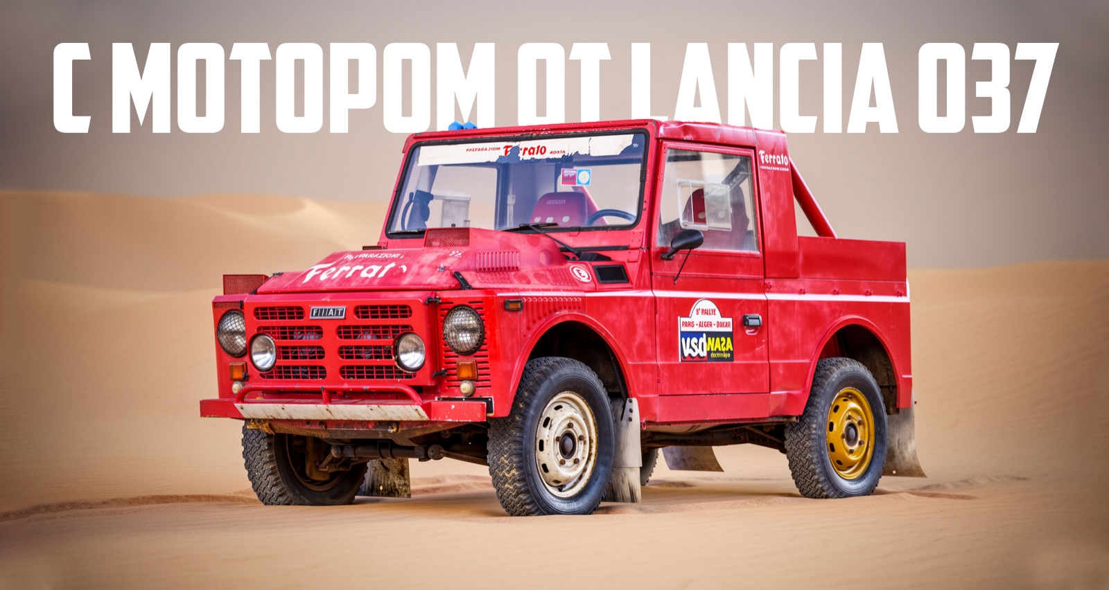 Подготовленный в 1984 году для ралли-рейдов итальянской мастерской Ferrato из Аосты (известной своими раллийными машинами), этот Fiat 1107 A Campagnola получил множество модернизаций — в том числе уникальным мотором.