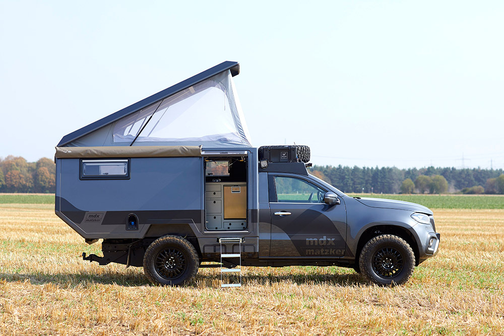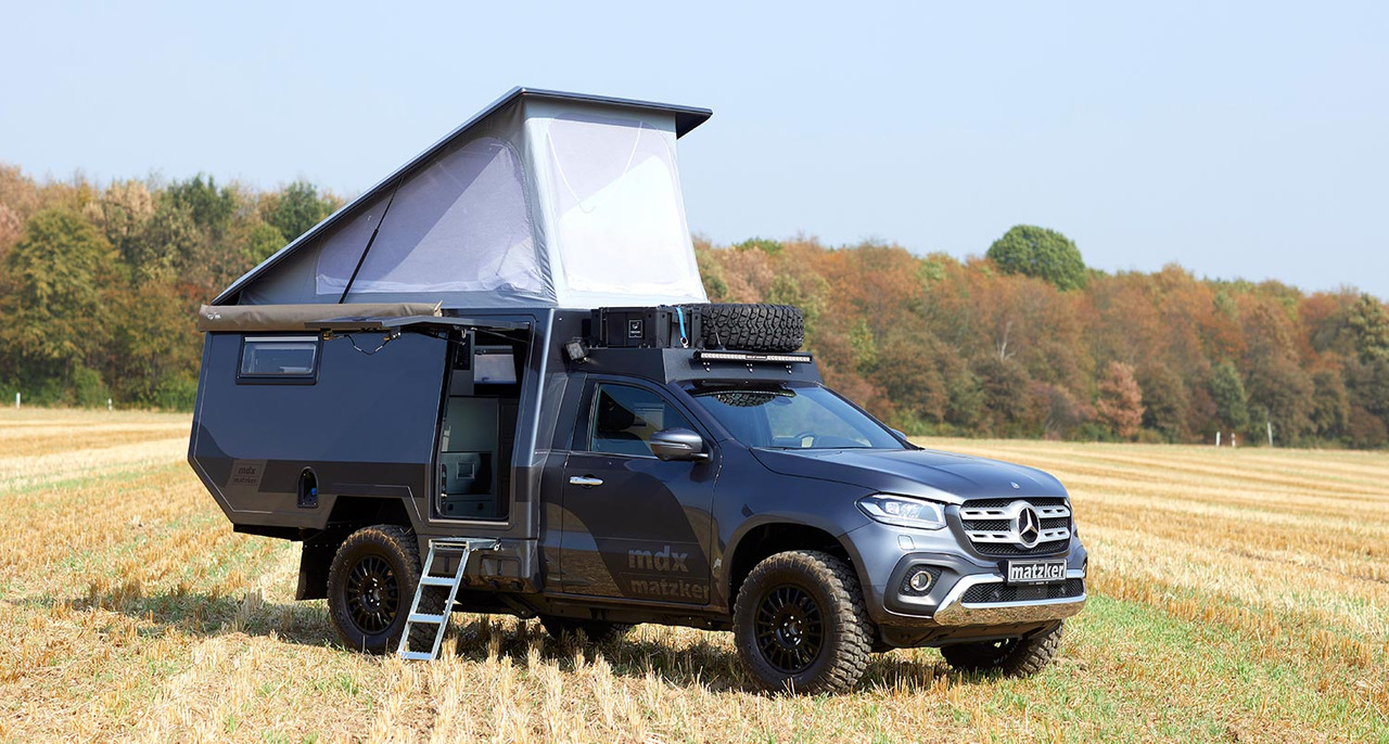 Производитель кемперов Matzker показал свою последнюю модель MDX, созданную на базе нового пикапа Mercedes-Benz X-класса. Это один из первых автодомов, использующих шасси пикапа Mercedes-Benz.