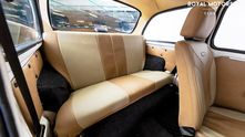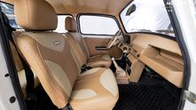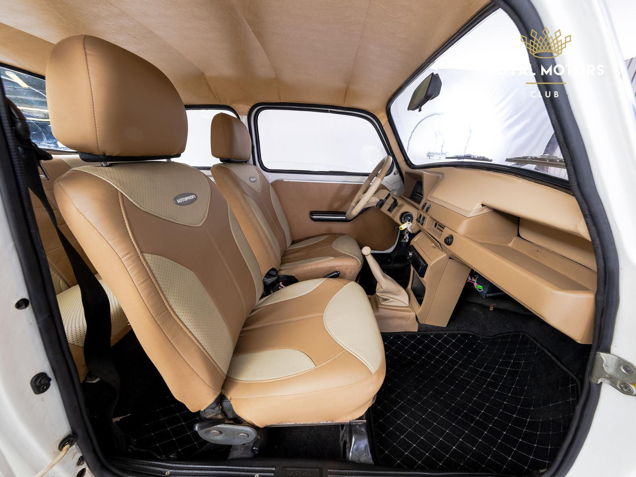 Салон также представляет собой симбиоз «Оки» и «Запорожца». Передняя панель, рулевое колесо, центральный туннель и даже сиденья тут от «Оки». Все выполнено в единой цветовой гамме с сочетанием светлых и темных бежевых оттенков. Такой выбор материалов и цветов добавляет нотки ретро в ощущения интерьера автомобиля.